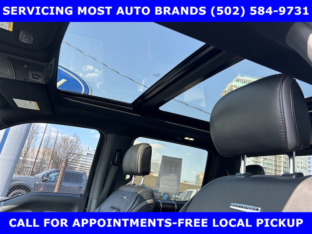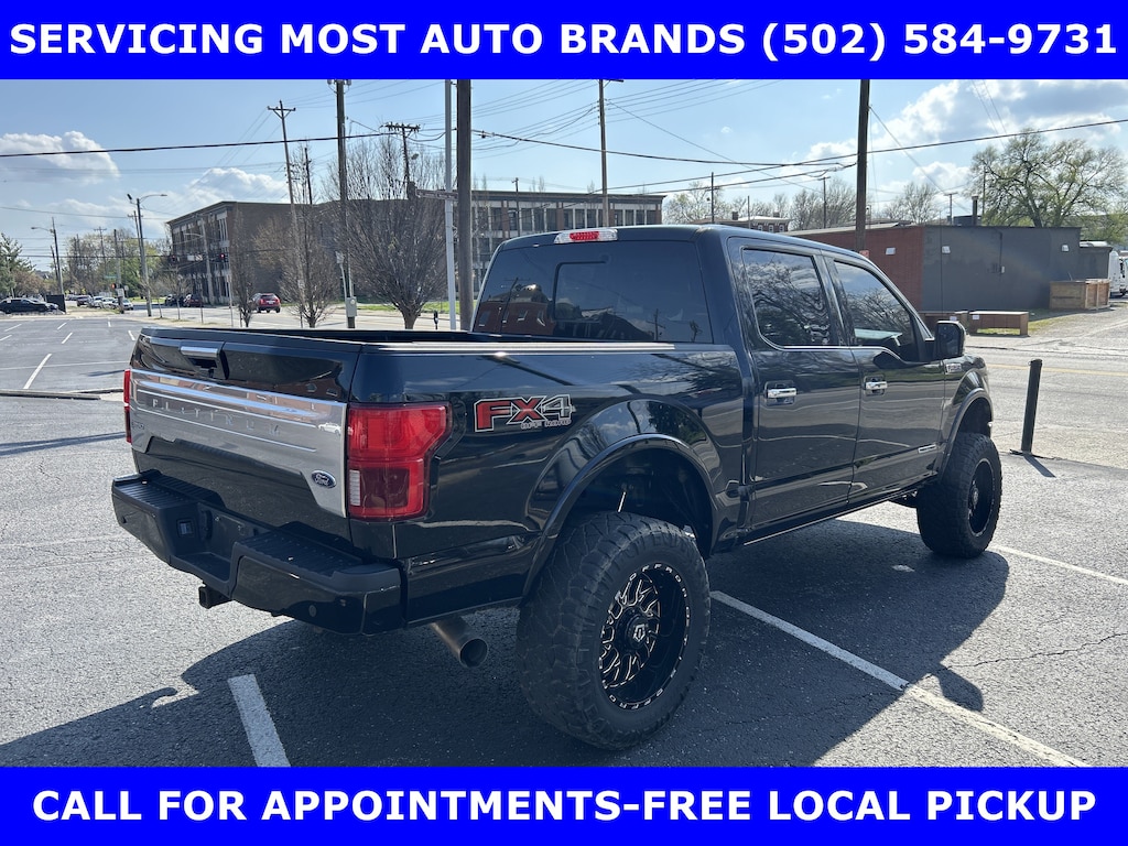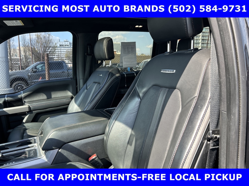 FORD CERTIFIED-LOCAL ONE OWNER-NEW FORD TRADE-2019 F-150 SUPERCREW PLATINUM FX4 4x4 3.0L TURBO DIESEL w/EQUIPMENT GROUP 701A-PLATINUM SERIES TECHNOLOGY PACKAGE-360 DEGREE CAMERA-ADAPT CRUISE-TAILGATE STEP-10 SPEED AUTO w/TOW MODE-3.31 ELECTRONIC LOCK REAR AXLE-7050# GVWR PACKAGE-TWIN PANEL MOONROOF-PRO TRAILER w/BACKUP ASSIST-TRAILER TOW PACKAGE-FX4 OFF-ROAD PACKAGE. SHOP & BUY FROM HOME. AUTOCHECK VEHICLE REPORT 'ZERO' REPORTED ACCIDENTS. CALL (502) 584-9731 FOR INFORMATION ON USED VEHICLES. JAMES COLLINS FORD-LOUISVILLE KY WWW.JAMESCOLLINSFORD.COM, PLUS TAX, LICENSE, FEES. *FORD BLUE ADVANTAGE® BLUE CERTIFIED VEHICLES ARE COVERED BY A FACTORY BACKED LIMITED WARRANTY: -- FOR A FORD, BUICK, CHEVROLET, CHRYSLER, DODGE, GMC, HONDA, JEEP, MAZDA, NISSAN, RAM, SUBARU, OR TOYOTA VEHICLE, 3-MONTH/4,000-MILE COMPREHENSIVE LIMITED WARRANTY BEGINS AT THE EXPIRATION OF THE NEW-VEHICLE LIMITED WARRANTY OR THE SIGNATURE DATE OF THE FORD BLUE ADVANTAGE® -- BLUE CERTIFIED VEHICLE PURCHASE (WHICHEVER COMES LATER) -- FOR OTHER MANUFACTURERS NOT LISTED ABOVE, COMPREHENSIVE COVERAGE IS PROVIDED FOR 3 MONTHS OR 4,000 MILES, WHICHEVER COMES FIRST, FROM THE SIGNATURE DATE OF THE FORD BLUE ADVANTAGE -- BLUE CERTIFIED PURCHASE. -- COMPREHENSIVE LIMITED WARRANTY COVERING 1,000+ COMPONENTS * 14-DAY OR 1,000-MILE MONEY BACK GUARANTEE, WHICHEVER COMES FIRST (SEE MONEY BACK GUARANTEE OPERATIONS GUIDE FOR FULL DETAILS.) * 11,000 FORDPASS® REWARDS POINTS TO USE TOWARD SCHEDULED MAINTENANCE VISITS OR OTHER REWARDS * SIRIUSXM THREE-MONTH COMPLIMENTARY TRIAL * CERTIFIED LIMITED WARRANTY INCLUDES: -- ROADSIDE ASSISTANCE FOR THREE MONTHS -- RENTAL CAR REIMBURSEMENT -- DESTINATION EXPENSE REIMBURSEMENT * VEHICLE ELIGIBILITY REQUIREMENTS ARE: -- CURRENT PLUS NINE PREVIOUS MODEL YEARS -- LESS THAN 150,000 ACTUAL MILES *TO BE CERTIFIED, ALL VEHICLES MUST PASS UP TO A 139-POINT INSPECTION, ENSURING THAT THE VEHICLE IS CLEAN AND MECHANICALLY SOUND (OIL CHANGE, FLUIDS TOPPED OFF, ETC.) PRICE DOES NOT INCLUDE $389.50 PRE/POST DELIVERY PREPARATION ADMIN FEE, DEALER INSTALLED ACCESSORIES IF ANY, STATE AND LOCAL TAXES OR STATE TITLE FEES.