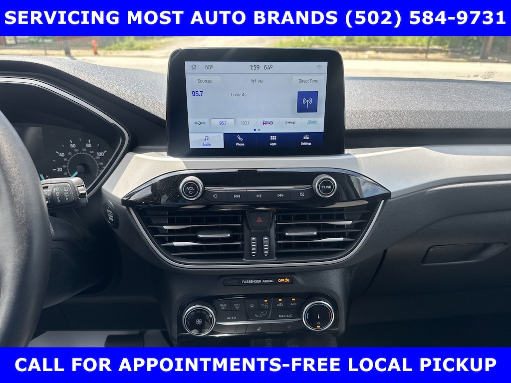 FORD BLUE ADVANTAGE CERTIFIED WARRANTY* LOCAL ONE OWNER NEW FORD TRADE-FORD ESCAPE SE AWD TURBO w/MINI SPARE WHEEL/TIRE-SUPPLEMENTAL PTC HEATER-17 ALLOY WHEELS-COLD WEATHER PACKAGE w/HEATED STEERING WHEEL-MIRROR-POWER/HEATED GLASS-ATC AIR CONDITIONER-REMOTE START SYSTEM-AM/FM STEREO w/6 SPEAKERS-BLIS w/CROSS-TRAFFIC ALERT-ELECTRIC PARKING BRAKE-FORD CO-PILOT360-FORDPASS CONNECT-ACCESS W/PUSH BUTTON START-REAR VIEW CAMERA-REFRESH95- SIRIUSXM-SYNC®3 8 SCRN W/APPLINK. Shop & Buy From Home. Very clean condition. Free metro delivery available. AutoCheck Vehicle Report 'Zero' Reported Accidents. Call (502) 584-9731 for information on Used vehicles. JAMES COLLINS FORD-Louisville Ky www.JamesCollinsFord.com, plus tax, license, fees. *Ford Blue Certified Limited Warranty * 90-day/4,000-mile Comprehensive Limited Warranty coverage* (whichever comes first) * 139 points of inspection by certified technicians * 11,000 FordPass? Rewards Points to use toward scheduled maintenance visits or other rewards * CarFax Vehicle History Report * SiriusXM 3-month complimentary trial * Ford cars, SUVs and trucks (up to 350-Series) that are current or nine previous model years and have fewer than 150,000 miles can qualify, including many non-Ford vehicles * A full tank of fuel, fresh oil and filter, and new wiper blades * Service available at any Ford Dealer in the 50 states. Price does not include $389.50 pre/post delivery preparation admin fee, dealer installed accessories if any, state and local taxes or state title fees. Large selection of highest quality Pre-owned, Ford Gold & Ford Blue Advantage Certified Ford vehicles for less, new inventory arriving daily, if you don't see what you want, we can find it for you at no additional charge. Free Delivery in Louisville Metro Area. We offer 15 approved lenders to choose from: Local and Regional Credit Unions, Ford Motor Credit, Major and regional Banks, Secondary Finance sources and other lending institutions. We can establish or re-establish credit and pay off your current vehicle even as much as $10,000 in negative equity.