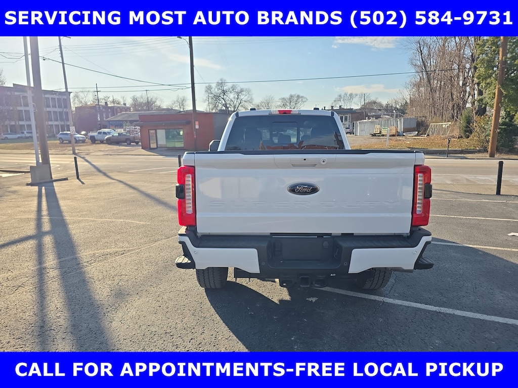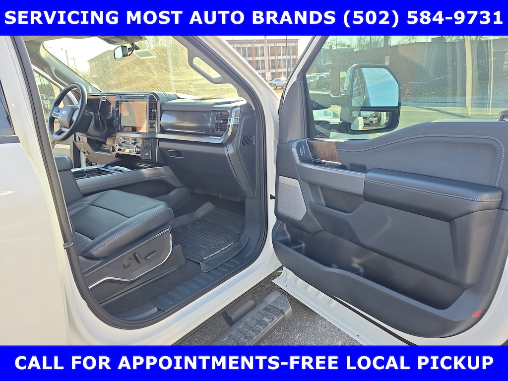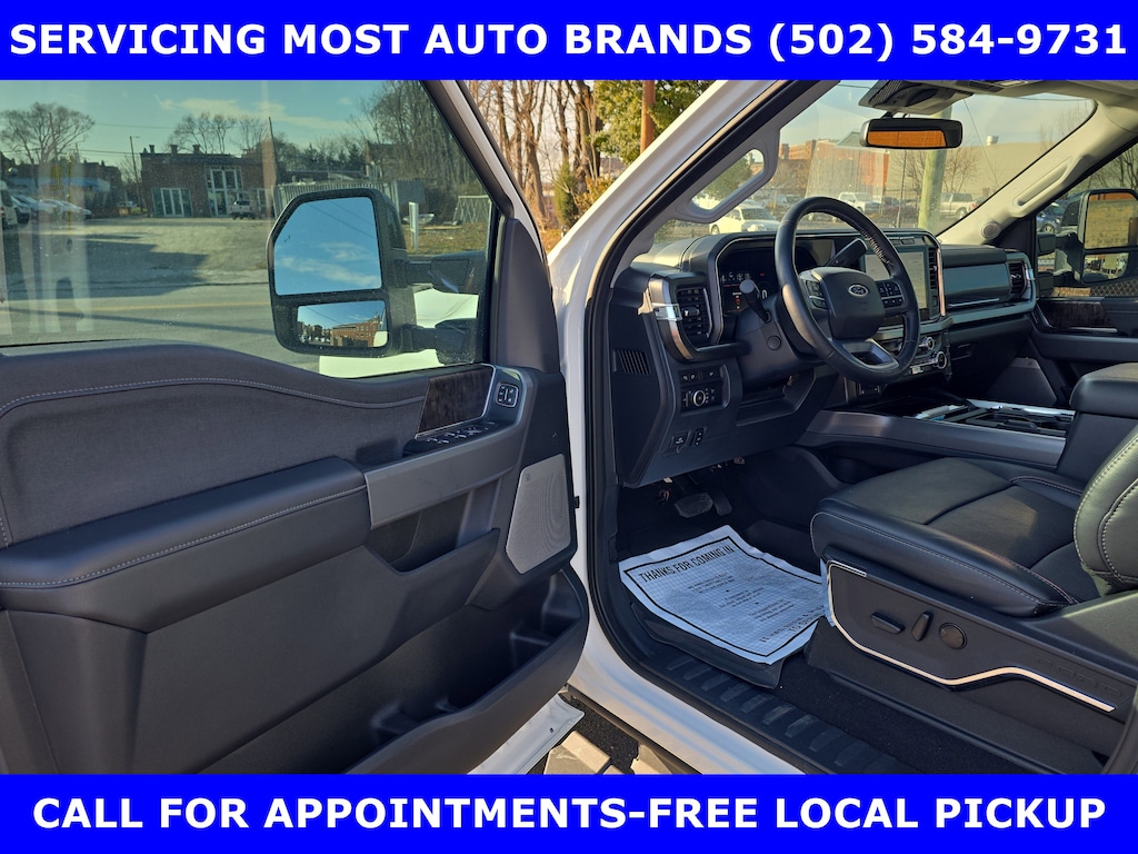 FORD GOLD CERTIFIED 7yr/100K WARRANTY** LOCAL ONE OWNER NEW FORD TRADE-2024 F-250 SUPERCREW SRW 4X4 FX4 LARIAT ULTIMATE BLACK Pkg 6.7L V-8 TWIN TURBO DIESEL (475hp) w/POWER TWIN PANEL MOON-3.55 ELECTRONIC-LOCKING AXLE-ALL WEATHER MATS-BLACK APPEARANCE PACKAGE-WHEEL WELL LINERS - REAR-20in HI GLOSS BLACK ALUMINUM WHEELS-FX4 OFF-ROAD PACKAGE w/SKID PLATES-11100# GVWR PACKAGE-5TH WHEEL HITCH PREP PACKAGE=HIGH CAPACITY TRAILER TOW PKG-TOUGH BED SPRAY IN BEDLINER-DUAL BATTERY-LEATHER Htd/VENTILATED POWER FRONT SEATS w/SPORT CONSOLE- LARIAT ULTIMATE PACKAGE-UPFITTER SWITCHES-TAILGATE STEP. SHOP & BUY FROM HOME. LIKE NEW CONDITION. FREE METRO DELIVERY AVAILABLE. AUTOCHECK VEHICLE REPORT 'ZERO' REPORTED ACCIDENTS. CALL (502) 584-9731 FOR INFORMATION ON USED VEHICLES. JAMES COLLINS FORD-LOUISVILLE KY WWW.JAMESCOLLINSFORD.COM, PLUS TAX LICENSE, & FEES.WE MAKE PURCHASING EASIER: Work directly with the Owner: Get your pricing, trade value, and financing directly from Daniel Mekuria (Owner/GM). Direct Line (502) 272-8605. Top-Tier Support: Drive with confidence backed by Metro Louisville's Highest Google-Rated Ford Service Center.**Ford Blue Advantage Gold Certified Vehicles are covered by a factory-backed limited warranty: -- 12 months or 12,000 miles, whichever comes first, of Comprehensive Limited Warranty covering more than 1,000 components. Coverage starts from the expiration of the Ford New-Vehicle Bumper-to-Bumper Limited Warranty or date of Ford Blue Advantage Certified Vehicle purchase, whichever comes later -- Powertrain Warranty coverage for 7 years from original new-vehicle limited warranty start date or 100,000 miles, whichever occurs first. Powertrain Limited Warranty covering select major components * 14-day or 1,000-mile Money Back Guarantee, whichever comes first (See Money Back Guarantee Operations Guide for full details.) * 22,000 FordPass® Rewards Points to use toward scheduled maintenance visits or other rewards * SiriusXM complimentary three-month trial * Powertrain Warranty includes: -- Roadside Assistance for the duration of the entire limited warranty coverage period -- Rental car reimbursement -- Destination expense reimbursement * Vehicle eligibility requirements are: -- Current plus five previous model years -- Less than 80,000 actual miles * All Gold Certified vehicles must pass up to a 172-point inspection. Price does not include $389.50 pre/post delivery preparation admin fee, dealer installed accessories if any, state and local taxes or state title fees. Large selection of highest quality Pre-owned, Ford Gold & Ford Blue Advantage Certified Ford vehicles for less, new inventory arriving daily, if you don't see what you want, we can find it for you at no additional charge. Free Delivery in Louisville Metro Area. We offer 15 approved lenders to choose from: Local and Regional Credit Unions, Ford Motor Credit, Major and regional Banks, Secondary Finance sources and other lending institutions. We can establish or re-establish credit and pay off your current vehicle even as much as $10,000 in negative equity.