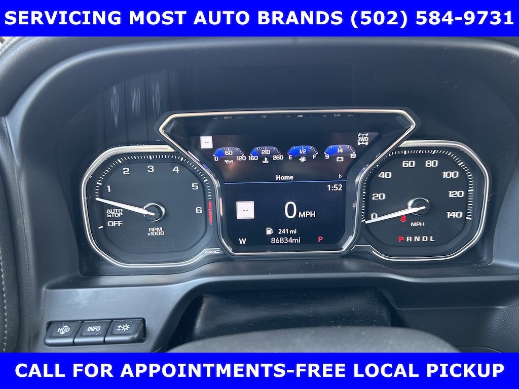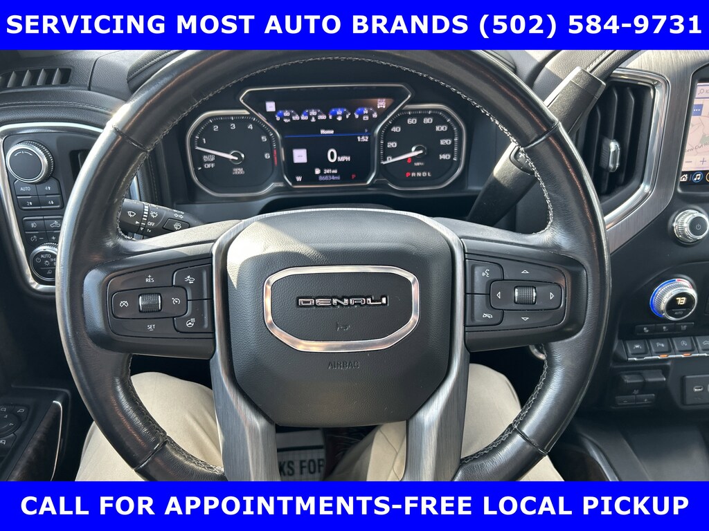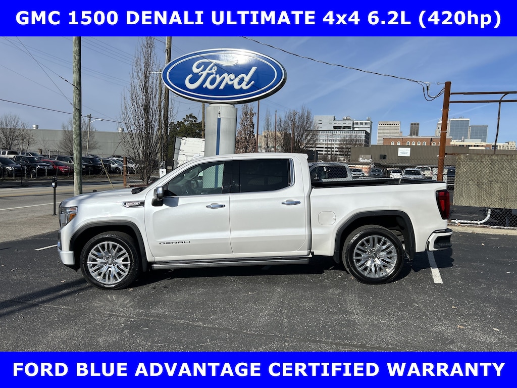 FORD BLUE ADVANTAGE CERTIFIED WARRANTY* LOCALLY OWNED NEW FORD TRADE-2019 GMC SIERRA 1500 DENALI ULTIMATE 4x4 6.2L V-8 (420hp) AUTOMATIC w/MOONROOF-Pwr LEATHER FRONT SEATS-22in PREMIUM ALLOYS-SPRAY IN BEDLINER-TRAILER TOW Pkg. SHOP & BUY FROM HOME. VERY CLEAN CONDITION. FREE METRO DELIVERY AVAILABLE. AUTOCHECK VEHICLE REPORT 'ZERO' REPORTED ACCIDENTS. CALL (502) 584-9731 FOR INFORMATION ON USED VEHICLES. JAMES COLLINS FORD-LOUISVILLE KY WWW.JAMESCOLLINSFORD.COM, PLUS TAX LICENSE, & FEES. *FORD BLUE ADVANTAGE® BLUE CERTIFIED VEHICLES ARE COVERED BY A FACTORY BACKED LIMITED WARRANTY: -- FOR A FORD, BUICK, CHEVROLET, CHRYSLER, DODGE, GMC, HONDA, JEEP, MAZDA, NISSAN, RAM, SUBARU, OR TOYOTA VEHICLE, 3-MONTH/4,000-MILE COMPREHENSIVE LIMITED WARRANTY BEGINS AT THE EXPIRATION OF THE NEW-VEHICLE LIMITED WARRANTY OR THE SIGNATURE DATE OF THE FORD BLUE ADVANTAGE® -- BLUE CERTIFIED VEHICLE PURCHASE (WHICHEVER COMES LATER) -- FOR OTHER MANUFACTURERS NOT LISTED ABOVE, COMPREHENSIVE COVERAGE IS PROVIDED FOR 3 MONTHS OR 4,000 MILES, WHICHEVER COMES FIRST, FROM THE SIGNATURE DATE OF THE FORD BLUE ADVANTAGE -- BLUE CERTIFIED PURCHASE. -- COMPREHENSIVE LIMITED WARRANTY COVERING 1,000+ COMPONENTS * 14-DAY OR 1,000-MILE MONEY BACK GUARANTEE, WHICHEVER COMES FIRST (SEE MONEY BACK GUARANTEE OPERATIONS GUIDE FOR FULL DETAILS.) * 11,000 FORDPASS® REWARDS POINTS TO USE TOWARD SCHEDULED MAINTENANCE VISITS OR OTHER REWARDS * SIRIUSXM THREE-MONTH COMPLIMENTARY TRIAL * CERTIFIED LIMITED WARRANTY INCLUDES: -- ROADSIDE ASSISTANCE FOR THREE MONTHS -- RENTAL CAR REIMBURSEMENT -- DESTINATION EXPENSE REIMBURSEMENT * VEHICLE ELIGIBILITY REQUIREMENTS ARE: -- CURRENT PLUS NINE PREVIOUS MODEL YEARS -- LESS THAN 150,000 ACTUAL MILES *TO BE CERTIFIED, ALL VEHICLES MUST PASS UP TO A 139-POINT INSPECTION, ENSURING THAT THE VEHICLE IS CLEAN AND MECHANICALLY SOUND (OIL CHANGE, FLUIDS TOPPED OFF, ETC.) PRICE DOES NOT INCLUDE $389.50 PRE/POST DELIVERY PREPARATION ADMIN FEE, DEALER INSTALLED ACCESSORIES IF ANY, STATE AND LOCAL TAXES OR STATE TITLE FEES.