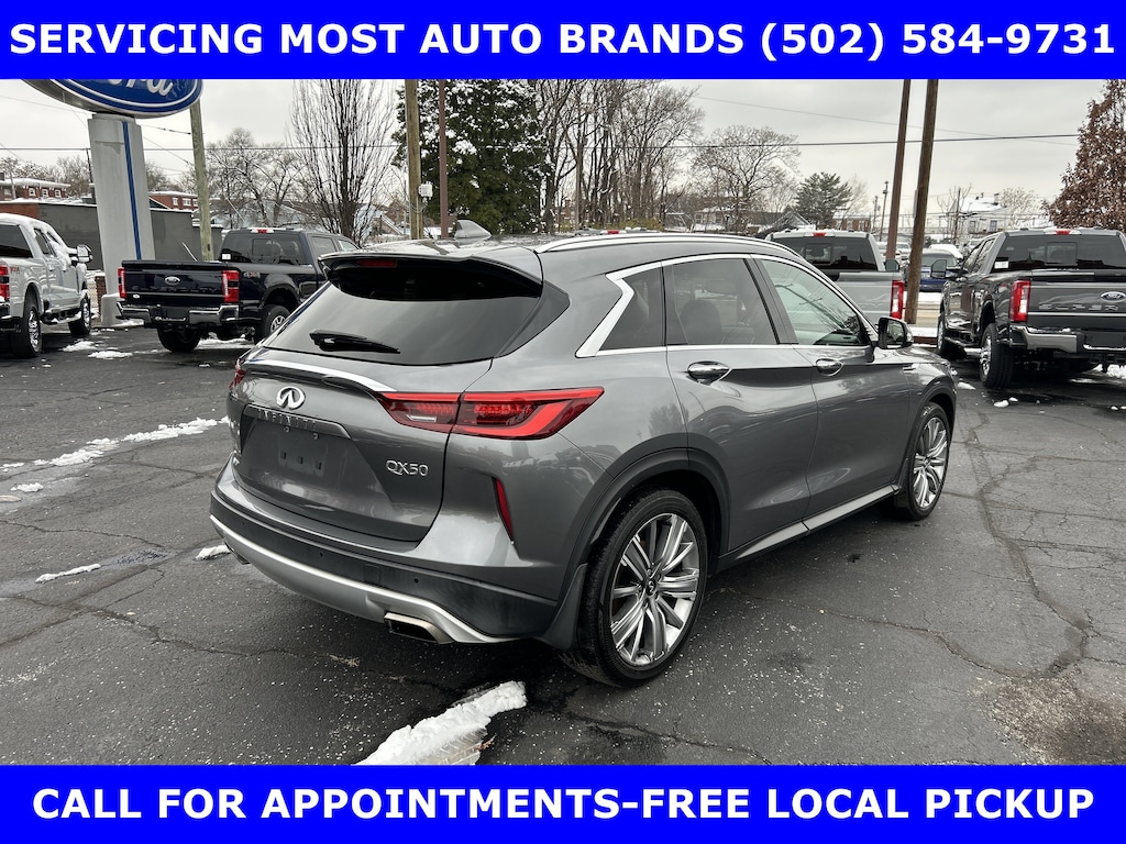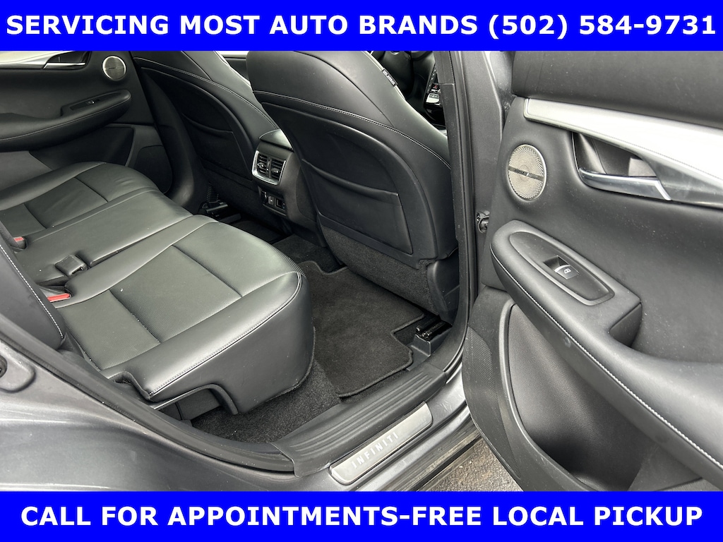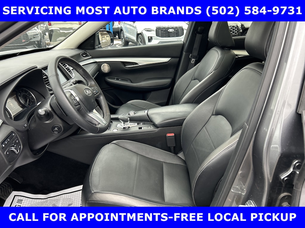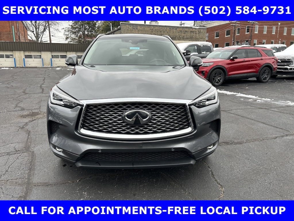 FORD BLUE ADVANTAGE BLUE CERTIFIED WARRANTY* LOCAL NEW FORD TRADE-QX50 AWD 2.0L VC TURBO w/POWER SUNROOF-POWER HEATED COOLED LEATHER FRONT SEATS-BOSE PERFORMANCE SERIES SOUND w/16 SPEAKERS-SUBWOOFER-SURROUND VIEW CAMERA w/FRONT & REAR PARKING SENSOR-HEATED MIRRORS-HEATED STEERING-20 ALLOYS. SHOP & BUY FROM HOME. VERY CLEAN CONDITION. FREE METRO DELIVERY AVAILABLE. AUTOCHECK VEHICLE REPORT 'ZERO' REPORTED ACCIDENTS. CALL (502) 584-9731 FOR INFORMATION ON USED VEHICLES. JAMES COLLINS FORD-LOUISVILLE KY WWW.JAMESCOLLINSFORD.COM, PLUS TAX LICENSE, & FEES. *FORD BLUE ADVANTAGE® BLUE CERTIFIED VEHICLES ARE COVERED BY A FACTORY BACKED LIMITED WARRANTY: -- FOR A FORD, BUICK, CHEVROLET, CHRYSLER, DODGE, GMC, HONDA, JEEP, MAZDA, NISSAN, RAM, SUBARU, OR TOYOTA VEHICLE, 3-MONTH/4,000-MILE COMPREHENSIVE LIMITED WARRANTY BEGINS AT THE EXPIRATION OF THE NEW-VEHICLE LIMITED WARRANTY OR THE SIGNATURE DATE OF THE FORD BLUE ADVANTAGE® -- BLUE CERTIFIED VEHICLE PURCHASE (WHICHEVER COMES LATER) -- FOR OTHER MANUFACTURERS NOT LISTED ABOVE, COMPREHENSIVE COVERAGE IS PROVIDED FOR 3 MONTHS OR 4,000 MILES, WHICHEVER COMES FIRST, FROM THE SIGNATURE DATE OF THE FORD BLUE ADVANTAGE -- BLUE CERTIFIED PURCHASE. -- COMPREHENSIVE LIMITED WARRANTY COVERING 1,000+ COMPONENTS * 14-DAY OR 1,000-MILE MONEY BACK GUARANTEE, WHICHEVER COMES FIRST (SEE MONEY BACK GUARANTEE OPERATIONS GUIDE FOR FULL DETAILS.) * 11,000 FORDPASS® REWARDS POINTS TO USE TOWARD SCHEDULED MAINTENANCE VISITS OR OTHER REWARDS * SIRIUSXM THREE-MONTH COMPLIMENTARY TRIAL * CERTIFIED LIMITED WARRANTY INCLUDES: -- ROADSIDE ASSISTANCE FOR THREE MONTHS -- RENTAL CAR REIMBURSEMENT -- DESTINATION EXPENSE REIMBURSEMENT * VEHICLE ELIGIBILITY REQUIREMENTS ARE: -- CURRENT PLUS NINE PREVIOUS MODEL YEARS -- LESS THAN 150,000 ACTUAL MILES *TO BE CERTIFIED, ALL VEHICLES MUST PASS UP TO A 139-POINT INSPECTION, ENSURING THAT THE VEHICLE IS CLEAN AND MECHANICALLY SOUND (OIL CHANGE, FLUIDS TOPPED OFF, ETC.). LARGE SELECTION OF HIGHEST QUALITY PRE-OWNED, FORD GOLD & FORD BLUE ADVANTAGE CERTIFIED FORD VEHICLES FOR LESS, NEW INVENTORY ARRIVING DAILY, IF YOU DON'T SEE WHAT YOU WANT, WE CAN FIND IT FOR YOU AT NO ADDITIONAL CHARGE. FREE DELIVERY IN LOUISVILLE METRO AREA. WE OFFER 15 APPROVED LENDERS TO CHOOSE FROM: LOCAL AND REGIONAL CREDIT UNIONS, FORD MOTOR CREDIT, MAJOR AND REGIONAL BANKS, SECONDARY FINANCE SOURCES AND OTHER LENDING INSTITUTIONS. WE CAN ESTABLISH OR RE-ESTABLISH CREDIT AND PAY OFF YOUR CURRENT VEHICLE EVEN AS MUCH AS $10,000 IN NEGATIVE EQUITY. PRICE DOES NOT INCLUDE $639.50 PRE/POST DELIVERY PREPARATION ADMIN FEE, DEALER INSTALLED ACCESSORIES IF ANY, STATE AND LOCAL TAXES OR STATE TITLE FEES.