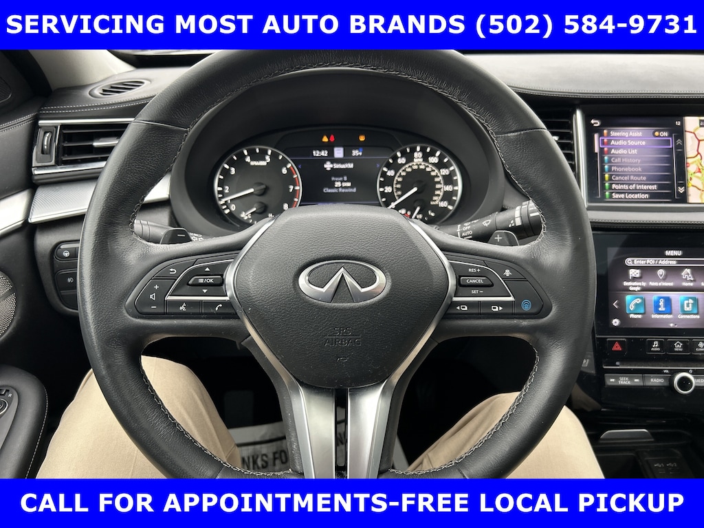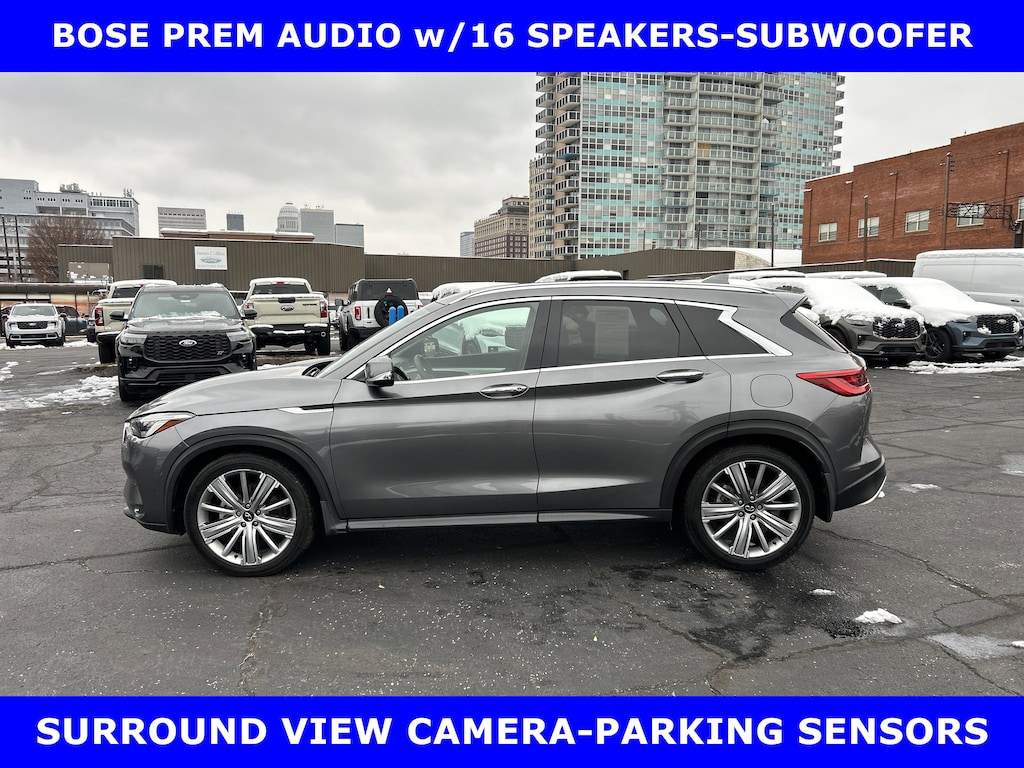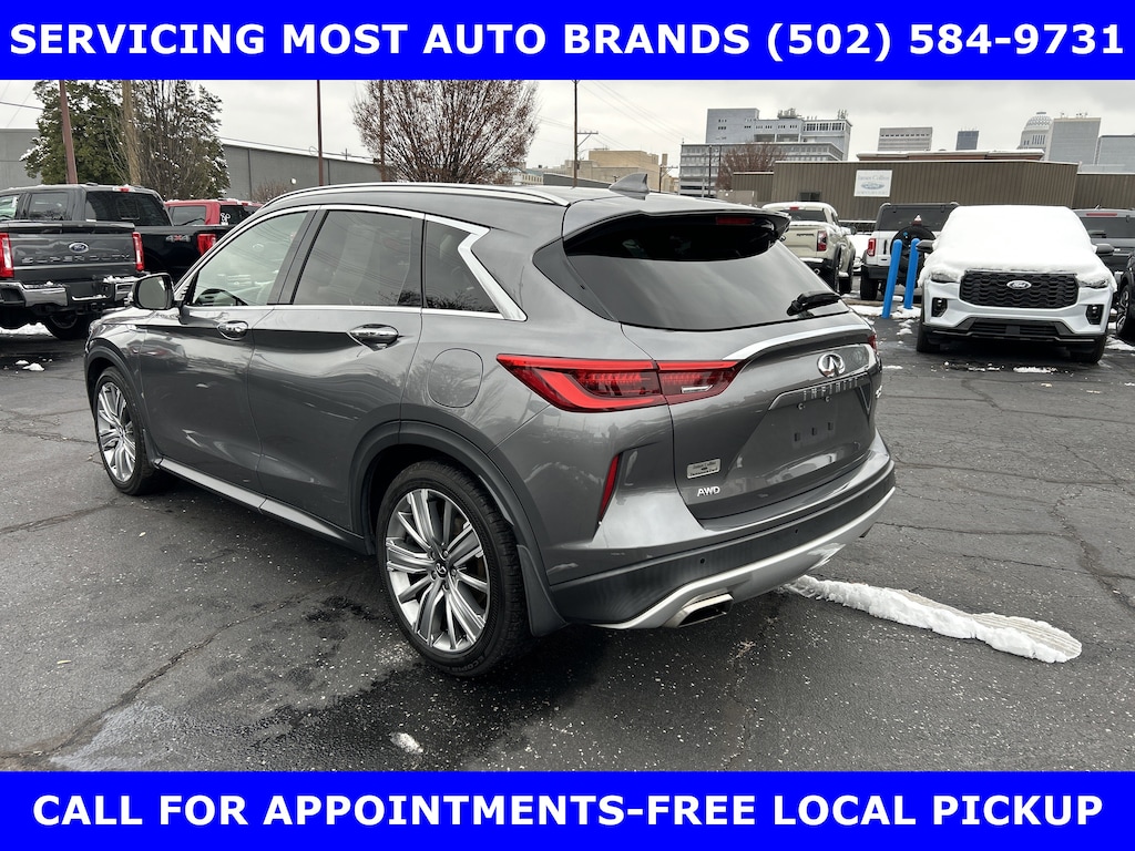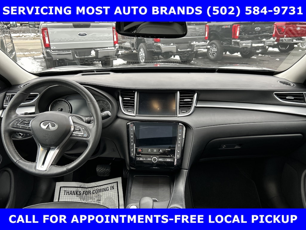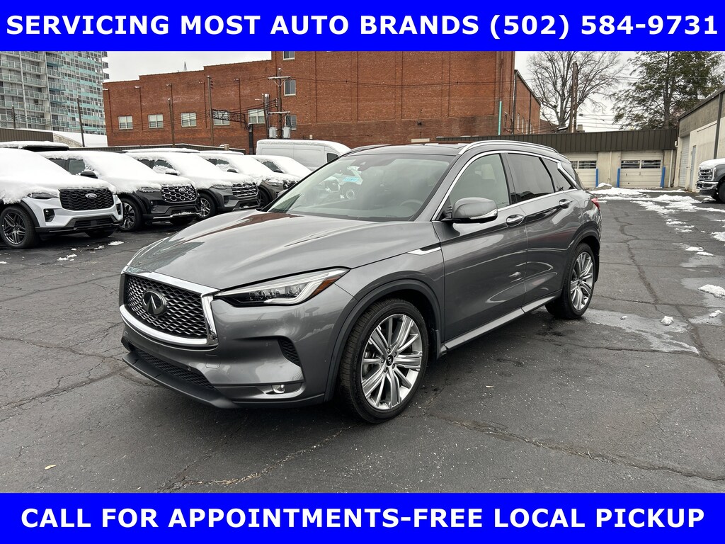 FORD BLUE ADVANTAGE BLUE CERTIFIED WARRANTY* LOCAL NEW FORD TRADE-QX50 AWD 2.0L VC TURBO w/POWER SUNROOF-POWER HEATED COOLED LEATHER FRONT SEATS-BOSE PERFORMANCE SERIES SOUND w/16 SPEAKERS-SUBWOOFER-SURROUND VIEW CAMERA w/FRONT & REAR PARKING SENSOR-HEATED MIRRORS-HEATED STEERING-20 ALLOYS. SHOP & BUY FROM HOME. VERY CLEAN CONDITION. FREE METRO DELIVERY AVAILABLE. AUTOCHECK VEHICLE REPORT 'ZERO' REPORTED ACCIDENTS. CALL (502) 584-9731 FOR INFORMATION ON USED VEHICLES. JAMES COLLINS FORD-LOUISVILLE KY WWW.JAMESCOLLINSFORD.COM, PLUS TAX LICENSE, & FEES. *FORD BLUE ADVANTAGE® BLUE CERTIFIED VEHICLES ARE COVERED BY A FACTORY BACKED LIMITED WARRANTY: -- FOR A FORD, BUICK, CHEVROLET, CHRYSLER, DODGE, GMC, HONDA, JEEP, MAZDA, NISSAN, RAM, SUBARU, OR TOYOTA VEHICLE, 3-MONTH/4,000-MILE COMPREHENSIVE LIMITED WARRANTY BEGINS AT THE EXPIRATION OF THE NEW-VEHICLE LIMITED WARRANTY OR THE SIGNATURE DATE OF THE FORD BLUE ADVANTAGE® -- BLUE CERTIFIED VEHICLE PURCHASE (WHICHEVER COMES LATER) -- FOR OTHER MANUFACTURERS NOT LISTED ABOVE, COMPREHENSIVE COVERAGE IS PROVIDED FOR 3 MONTHS OR 4,000 MILES, WHICHEVER COMES FIRST, FROM THE SIGNATURE DATE OF THE FORD BLUE ADVANTAGE -- BLUE CERTIFIED PURCHASE. -- COMPREHENSIVE LIMITED WARRANTY COVERING 1,000+ COMPONENTS * 14-DAY OR 1,000-MILE MONEY BACK GUARANTEE, WHICHEVER COMES FIRST (SEE MONEY BACK GUARANTEE OPERATIONS GUIDE FOR FULL DETAILS.) * 11,000 FORDPASS® REWARDS POINTS TO USE TOWARD SCHEDULED MAINTENANCE VISITS OR OTHER REWARDS * SIRIUSXM THREE-MONTH COMPLIMENTARY TRIAL * CERTIFIED LIMITED WARRANTY INCLUDES: -- ROADSIDE ASSISTANCE FOR THREE MONTHS -- RENTAL CAR REIMBURSEMENT -- DESTINATION EXPENSE REIMBURSEMENT * VEHICLE ELIGIBILITY REQUIREMENTS ARE: -- CURRENT PLUS NINE PREVIOUS MODEL YEARS -- LESS THAN 150,000 ACTUAL MILES *TO BE CERTIFIED, ALL VEHICLES MUST PASS UP TO A 139-POINT INSPECTION, ENSURING THAT THE VEHICLE IS CLEAN AND MECHANICALLY SOUND (OIL CHANGE, FLUIDS TOPPED OFF, ETC.). LARGE SELECTION OF HIGHEST QUALITY PRE-OWNED, FORD GOLD & FORD BLUE ADVANTAGE CERTIFIED FORD VEHICLES FOR LESS, NEW INVENTORY ARRIVING DAILY, IF YOU DON'T SEE WHAT YOU WANT, WE CAN FIND IT FOR YOU AT NO ADDITIONAL CHARGE. FREE DELIVERY IN LOUISVILLE METRO AREA. WE OFFER 15 APPROVED LENDERS TO CHOOSE FROM: LOCAL AND REGIONAL CREDIT UNIONS, FORD MOTOR CREDIT, MAJOR AND REGIONAL BANKS, SECONDARY FINANCE SOURCES AND OTHER LENDING INSTITUTIONS. WE CAN ESTABLISH OR RE-ESTABLISH CREDIT AND PAY OFF YOUR CURRENT VEHICLE EVEN AS MUCH AS $10,000 IN NEGATIVE EQUITY. PRICE DOES NOT INCLUDE $639.50 PRE/POST DELIVERY PREPARATION ADMIN FEE, DEALER INSTALLED ACCESSORIES IF ANY, STATE AND LOCAL TAXES OR STATE TITLE FEES.