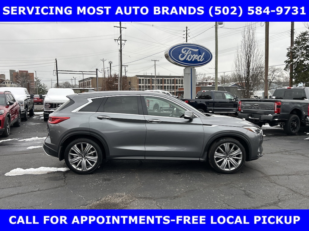 FORD BLUE ADVANTAGE BLUE CERTIFIED WARRANTY* LOCAL NEW FORD TRADE-QX50 AWD 2.0L VC TURBO w/POWER SUNROOF-POWER HEATED LEATHER FRONT SEATS-BOSE PERFORMANCE SERIES SOUND w/16 SPEAKERS-SUBWOOFER-SURROUND VIEW CAMERA w/FRONT & REAR PARKING SENSOR-HEATED MIRRORS-HEATED STEERING-20 ALLOYS. SHOP & BUY FROM HOME. VERY CLEAN CONDITION. FREE METRO DELIVERY AVAILABLE. AUTOCHECK VEHICLE REPORT 'ZERO' REPORTED ACCIDENTS. CALL (502) 584-9731 FOR INFORMATION ON USED VEHICLES. JAMES COLLINS FORD-LOUISVILLE KY WWW.JAMESCOLLINSFORD.COM, PLUS TAX LICENSE, & FEES. *FORD BLUE ADVANTAGE® BLUE CERTIFIED VEHICLES ARE COVERED BY A FACTORY BACKED LIMITED WARRANTY: -- FOR A FORD, BUICK, CHEVROLET, CHRYSLER, DODGE, GMC, HONDA, JEEP, MAZDA, NISSAN, RAM, SUBARU, OR TOYOTA VEHICLE, 3-MONTH/4,000-MILE COMPREHENSIVE LIMITED WARRANTY BEGINS AT THE EXPIRATION OF THE NEW-VEHICLE LIMITED WARRANTY OR THE SIGNATURE DATE OF THE FORD BLUE ADVANTAGE® -- BLUE CERTIFIED VEHICLE PURCHASE (WHICHEVER COMES LATER) -- FOR OTHER MANUFACTURERS NOT LISTED ABOVE, COMPREHENSIVE COVERAGE IS PROVIDED FOR 3 MONTHS OR 4,000 MILES, WHICHEVER COMES FIRST, FROM THE SIGNATURE DATE OF THE FORD BLUE ADVANTAGE -- BLUE CERTIFIED PURCHASE. -- COMPREHENSIVE LIMITED WARRANTY COVERING 1,000+ COMPONENTS * 14-DAY OR 1,000-MILE MONEY BACK GUARANTEE, WHICHEVER COMES FIRST (SEE MONEY BACK GUARANTEE OPERATIONS GUIDE FOR FULL DETAILS.) * 11,000 FORDPASS® REWARDS POINTS TO USE TOWARD SCHEDULED MAINTENANCE VISITS OR OTHER REWARDS * SIRIUSXM THREE-MONTH COMPLIMENTARY TRIAL * CERTIFIED LIMITED WARRANTY INCLUDES: -- ROADSIDE ASSISTANCE FOR THREE MONTHS -- RENTAL CAR REIMBURSEMENT -- DESTINATION EXPENSE REIMBURSEMENT * VEHICLE ELIGIBILITY REQUIREMENTS ARE: -- CURRENT PLUS NINE PREVIOUS MODEL YEARS -- LESS THAN 150,000 ACTUAL MILES *TO BE CERTIFIED, ALL VEHICLES MUST PASS UP TO A 139-POINT INSPECTION, ENSURING THAT THE VEHICLE IS CLEAN AND MECHANICALLY SOUND (OIL CHANGE, FLUIDS TOPPED OFF, ETC.) PRICE DOES NOT INCLUDE $389.50 PRE/POST DELIVERY PREPARATION ADMIN FEE, DEALER INSTALLED ACCESSORIES IF ANY, STATE AND LOCAL TAXES OR STATE TITLE FEES. LARGE SELECTION OF HIGHEST QUALITY PRE-OWNED, FORD GOLD & FORD BLUE ADVANTAGE CERTIFIED FORD VEHICLES FOR LESS, NEW INVENTORY ARRIVING DAILY, IF YOU DON'T SEE WHAT YOU WANT, WE CAN FIND IT FOR YOU AT NO ADDITIONAL CHARGE. FREE DELIVERY IN LOUISVILLE METRO AREA. WE OFFER 15 APPROVED LENDERS TO CHOOSE FROM: LOCAL AND REGIONAL CREDIT UNIONS, FORD MOTOR CREDIT, MAJOR AND REGIONAL BANKS, SECONDARY FINANCE SOURCES AND OTHER LENDING INSTITUTIONS. WE CAN ESTABLISH OR RE-ESTABLISH CREDIT AND PAY OFF YOUR CURRENT VEHICLE EVEN AS MUCH AS $10,000 IN NEGATIVE EQUITY.