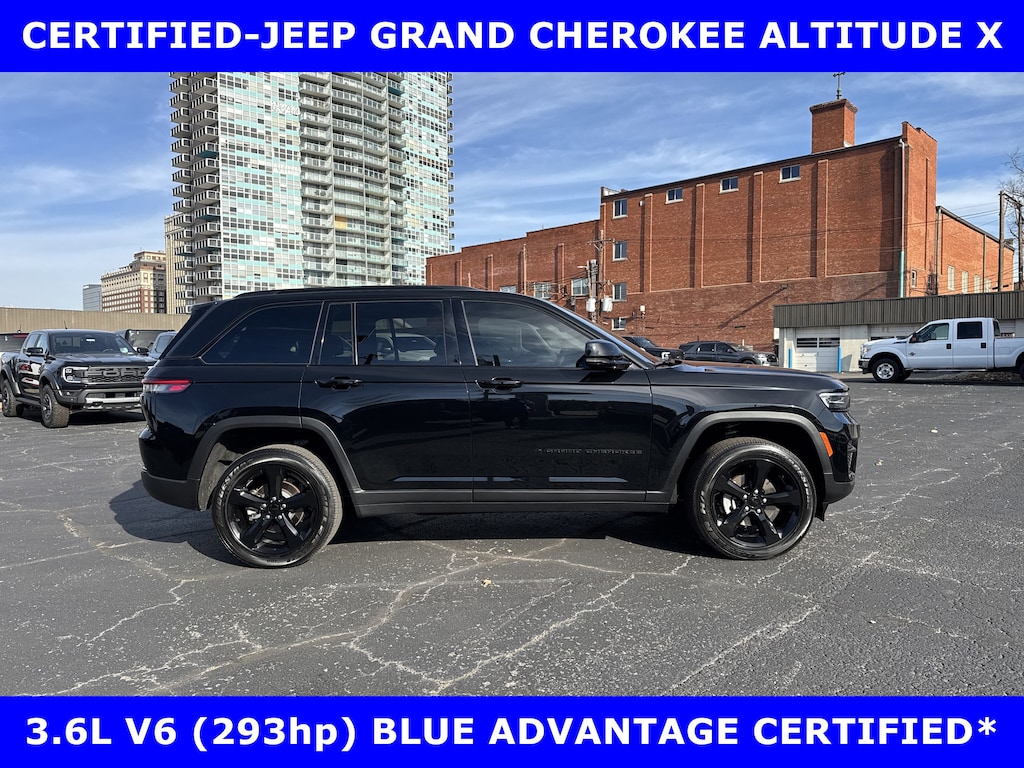 CERTIFIED-LOCAL ONE OWNER-NEW FORD TRADE-2024 JEEP GRAND CHEROKEE ALTITUDE X 4x4 3.6L V-6 (293hp) w/POWER MOONROOF-20in PREMIUM BLACK ALLOYS-HEATED FRONT SEATS w/Pwr DRIVER-HEATED STEERING WHEEL-REMOTE START. SHOP & BUY FROM HOME. EXCELLENT FIRST CLASS CONDITION, FREE METRO DELIVERY AVAILABLE. REMAINDER OF FACTORY WARRANTY. CALL (502) 584-9731 FOR INFORMATION ON USED VEHICLES. JAMES COLLINS FORD-LOUISVILLE KY WWW.JAMESCOLLINSFORD.COM, PLUS TAX, LICENSE, FEES. *FORD BLUE ADVANTAGE® BLUE CERTIFIED VEHICLES ARE COVERED BY A FACTORY BACKED LIMITED WARRANTY: -- FOR A FORD, BUICK, CHEVROLET, CHRYSLER, DODGE, GMC, HONDA, JEEP, MAZDA, NISSAN, RAM, SUBARU, OR TOYOTA VEHICLE, 3-MONTH/4,000-MILE COMPREHENSIVE LIMITED WARRANTY BEGINS AT THE EXPIRATION OF THE NEW-VEHICLE LIMITED WARRANTY OR THE SIGNATURE DATE OF THE FORD BLUE ADVANTAGE® -- BLUE CERTIFIED VEHICLE PURCHASE (WHICHEVER COMES LATER) -- FOR OTHER MANUFACTURERS NOT LISTED ABOVE, COMPREHENSIVE COVERAGE IS PROVIDED FOR 3 MONTHS OR 4,000 MILES, WHICHEVER COMES FIRST, FROM THE SIGNATURE DATE OF THE FORD BLUE ADVANTAGE -- BLUE CERTIFIED PURCHASE. -- COMPREHENSIVE LIMITED WARRANTY COVERING 1,000+ COMPONENTS * 14-DAY OR 1,000-MILE MONEY BACK GUARANTEE, WHICHEVER COMES FIRST (SEE MONEY BACK GUARANTEE OPERATIONS GUIDE FOR FULL DETAILS.) * 11,000 FORDPASS® REWARDS POINTS TO USE TOWARD SCHEDULED MAINTENANCE VISITS OR OTHER REWARDS * SIRIUSXM THREE-MONTH COMPLIMENTARY TRIAL * CERTIFIED LIMITED WARRANTY INCLUDES: -- ROADSIDE ASSISTANCE FOR THREE MONTHS -- RENTAL CAR REIMBURSEMENT -- DESTINATION EXPENSE REIMBURSEMENT * VEHICLE ELIGIBILITY REQUIREMENTS ARE: -- CURRENT PLUS NINE PREVIOUS MODEL YEARS -- LESS THAN 150,000 ACTUAL MILES *TO BE CERTIFIED, ALL VEHICLES MUST PASS UP TO A 139-POINT INSPECTION, ENSURING THAT THE VEHICLE IS CLEAN AND MECHANICALLY SOUND (OIL CHANGE, FLUIDS TOPPED OFF, ETC.) PRICE DOES NOT INCLUDE $389.50 PRE/POST DELIVERY PREPARATION ADMIN FEE, DEALER INSTALLED ACCESSORIES IF ANY, STATE AND LOCAL TAXES OR STATE TITLE FEES.