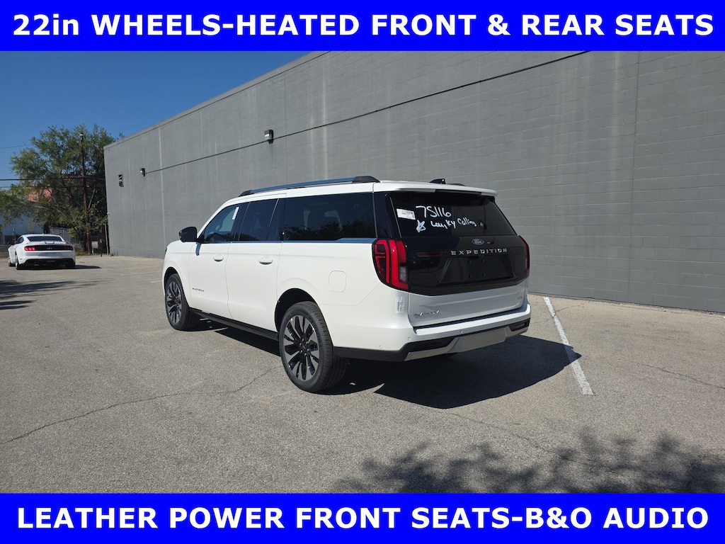 1. 2025 EXPEDITION PLATINUM MAX 4x4 3.5L ECOBOOST TWIN TURBO V-6 (400hp) 10SPD AUTO TRANS w/BLACK ONYX LEATHER-TRIM SEATS-8-PASSENGER-HEAVY DUTY TRAILER TOW-PANORAMIC VISTA ROOF-STAR WHITE MET TRI-COAT-FORD CO-PILOT360 ACTIVE 2.0-22" EBONY BRIGHT MACH ALUMINUM WHEELS-2ND ROW 40/20/40 POWER FOLD BENCH-FLOOR LINERS-BLUECRUISE EQUIP: 90 DAY TRIAL-DRIVER'S PACKAGE-P275/50R22 A/S BSW TIRES-CONNECTIVITY PKG ONE TIME PURCHASE-2ND ROW HEATED SEATS-3RD ROW 40/20/40 FLEX SEAT W/ POWERFOLD-AMBIENT LIGHTING-CARGO MANAGEMENT SYSTEM-FLEX POWERED CONSOLE-HTD LEATHER WRAPPED STEERING WHEEL W/CRUISE AND AUDIO CONTROLS-HTD/VENTILATED FRT SEATS-MEMORY DRIVER SEAT-PEDALS-PWR ADJ W/MEMORY-PWR TILT/TEL STEERING COLUMN W/MEM-TRI-ZONE AUTO CLIMATE CONTROL.New vehicle retail pricing is based on A/Z Plan less all cash rebates and lease conquest. Must provide A/Z Plan PIN at time of sale. A/Z Plan pricing is determined by Ford for all active Ford employees and retired/surviving spouses and their immediate families. Non A/Z Price slightly higher. While every step is taken to assure correct vehicle information, James Collins Ford is not responsible for errors. See sales department for complete details.The advertised price does not reflect the final selling price. The advertised price of new and used vehicles does not include sales tax, finance charges and license fees required by law. We attempt to update this inventory on a regular basis. However, there can be a delay between the sale of a vehicle and the update of the inventory. Pricing and availability may vary based on a variety of factors, including options, specials and financing qualifications. The estimated selling price that appears after calculating dealer offers is for informational purposes, only. You may not qualify for the offers, incentives, discounts, or financing. Offers, incentives, discounts, or financing are subject to expiration and other restrictions. Vehicles labeled Coming Very Soon are currently not for sale, awaiting title. For informational purposes only. See dealer for qualifications and complete details.