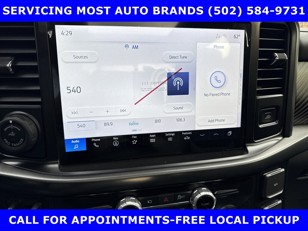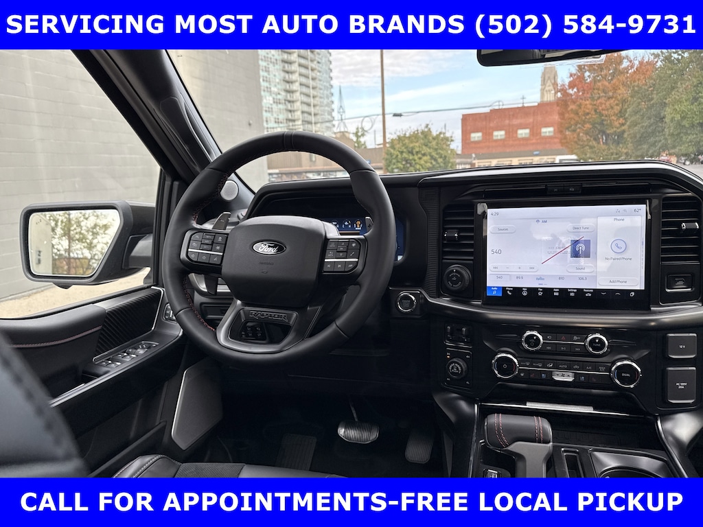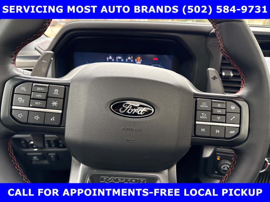 2025 RAPTOR 4X4 SUPERCREW. 3.5L ECOBOOST HIGH OUTPUT (450hp) w/TWIN PANEL MOONROOF-EQUIPMENT GROUP 802A w/POWER HEATED VENT SUEDE & LEATHER RECARO FRONT SEATS-HEATED 2ND ROW-RAPTOR 37 UNIQUE 17" CAST ALLOY BEAD LOCK WHEELS-DUAL EXHAUST SYSTEM w/DUAL TAILPIPES-DUAL VALVE SHOCKS-FOX LIVE VALVE SHOCKS-12" TOUCH SCREEN w/360 DEGREE CAMERA-REVERSE SENSING AND REAR VIEW CAMERA-PRO TRAILER BACKUP ASSIST & PRO TRAILER HITCH ASSIST-B&O UNLEASHED PREM AUDIO w/14 SPEAKERS-SUBWOOFER-BED UTILITY PACKAGE-MOBILE OFFICE PACKAGE- TOUGHBED SPRAYIN BEDLINER-POWER ADJUST PEDALS.WE MAKE PURCHASING EASIER: Work directly with the Owner: Get your pricing, trade value, and financing directly from Daniel Mekuria (Owner/GM). Direct Line (502) 272-8605.Top-Tier Support: Drive with confidence backed by Metro Louisville's Highest Google-Rated Ford Service Center.THE ADVERTISED PRICE DOES NOT REFLECT THE FINAL SELLING PRICE. THE ADVERTISED PRICE OF NEW AND USED VEHICLES DOES NOT INCLUDE SALES TAX, FINANCE CHARGES AND LICENSE FEES REQUIRED BY LAW. WE ATTEMPT TO UPDATE THIS INVENTORY ON A REGULAR BASIS. HOWEVER, THERE CAN BE A DELAY BETWEEN THE SALE OF A VEHICLE AND THE UPDATE OF THE INVENTORY. PRICING AND AVAILABILITY MAY VARY BASED ON A VARIETY OF FACTORS, INCLUDING OPTIONS AND FINANCING QUALIFICATIONS. THE ESTIMATED SELLING PRICE THAT APPEARS AFTER CALCULATING DEALER OFFERS IS FOR INFORMATIONAL PURPOSES, ONLY. YOU MAY NOT QUALIFY FOR THE OFFERS, INCENTIVES, DISCOUNTS, OR FINANCING. OFFERS, INCENTIVES, DISCOUNTS, OR FINANCING ARE SUBJECT TO EXPIRATION AND OTHER RESTRICTIONS. VEHICLES LABELED COMING VERY SOON ARE CURRENTLY NOT FOR SALE, AWAITING TITLE. FOR INFORMATIONAL PURPOSES ONLY. SEE DEALER FOR QUALIFICATIONS AND COMPLETE DETAILS. NATIONWIDE DELIVERY AVAILABLE. FINAL PRICE INCLUDES $500 FINANCING WITH A JAMES COLLINS FORD APPROVED LENDER AND $500 CUSTOMER TRADE ASSISTANCE BONUS. ABOVE MARKET VALUES ON CLEAN 2011 MODELS AND NEWER. PRICE DOES NOT INCLUDE $389.50 PRE/POST DELIVERY PREPARATION ADMIN FEE, DEALER INSTALLED ACCESSORIES IF ANY, STATE AND LOCAL TAXES OR STATE TITLE FEES. LARGE SELECTION OF HIGHEST QUALITY PRE-OWNED, GOLD & FORD CERTIFIED FORD VEHICLES FOR LESS, NEW INVENTORY ARRIVING DAILY, IF YOU DON'T SEE WHAT YOU WANT, WE CAN FIND IT FOR YOU AT NO ADDITIONAL CHARGE. FREE DELIVERY IN LOUISVILLE METRO AREA. FOR MORE INFORMATION PLEASE CALL (502) 584-9731. WE OFFER 14 APPROVED LENDERS TO CHOOSE FROM LOCAL AND REGIONAL CREDIT UNIONS, FORD MOTOR CREDIT, MAJOR AND REGIONAL BANKS, SECONDARY FINANCE SOURCES AND OTHER LENDING INSTITUTIONS. WE CAN ESTABLISH OR RE-ESTABLISH CREDIT AND PAY OFF YOUR CURRENT VEHICLE EVEN AS MUCH AS $10,000 IN NEGATIVE EQUITY.PRICE DOES NOT INCLUDE $389.50 PRE/POST DELIVERY PREPARATION ADMIN FEE, DEALER INSTALLED ACCESSORIES IF ANY, STATE AND LOCAL TAXES OR STATE TITLE FEES.