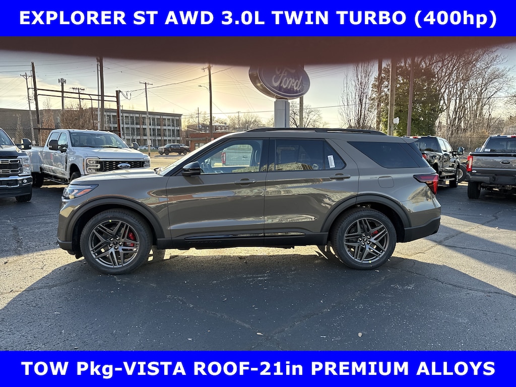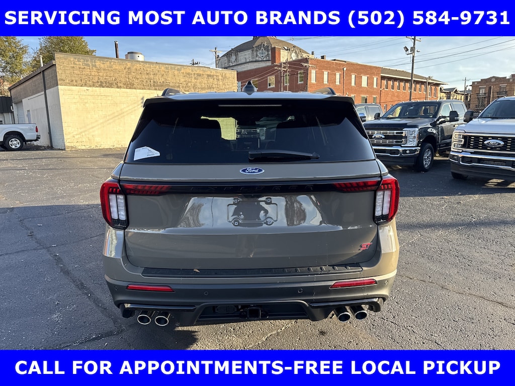 **PRICE INCLUDES $3500 RETAIL CUST CASH (EXP. APR 30 2026) + $500 AZXD PLAN CUDT CASH (EXP. APR 30 2026)** 2026 EXPLORER ST 4WD 3.0L ECOBOOST V6 ENGINE (400hp) w/SUN AND SOUND PACKAGE-PANO FIXED GLASS MOONROOF w/POWER SHADE-B&O PREM SOUND SYSTEM 980 WATTS w/14 SPEAKERS-SUBWOOFER POWER HEATED VENT MULTICONTOUR ONYX MIKO SUEDE FRONT SEATS-HEATED 2ND ROW CAPTAIN'S CHAIRS-13.2" TOUCH SCREEN w/360 DEGREE CAMERA-SPORT TUNED SUSPENSION-CLASS III TOW-21" PREM ALLOYS-HEATED POWER FOLD AUTOFOLD MIRRORS.WE MAKE PURCHASING EASIER: Work directly with the Owner: Get your pricing, trade value, and financing directly from Daniel Mekuria (Owner/GM). Direct Line (502) 272-8605.Top-Tier Support: Drive with confidence backed by Metro Louisville's Highest Google-Rated Ford Service Center.ALL PRICES INCLUDE A/Z PLAN WITH ALL FACTORY/CONQUEST/RENEWAL/LOYALTY REBATES TO DEALER. NO PLAN, RENEWAL, OR LOYALTY SLIGHTLY MORE.THE ADVERTISED PRICE DOES NOT REFLECT THE FINAL SELLING PRICE. TAX, TITLE AND LICENSE FEES ARE NOT INCLUDED IN THE ADVERTISED PRICE AND ARE REQUIRED BY LAW AND MUST BE PAID BY THE PURCHASER. WE ATTEMPT TO UPDATE THIS INVENTORY ON A REGULAR BASIS. HOWEVER, THERE CAN BE A DELAY BETWEEN THE SALE OF A VEHICLE AND THE UPDATE OF THE INVENTORY. PRICING AND AVAILABILITY MAY VARY BASED ON A VARIETY OF FACTORS, INCLUDING OPTIONS, SPECIALS AND FINANCING QUALIFICATIONS. THE ESTIMATED SELLING PRICE THAT APPEARS AFTER CALCULATING DEALER OFFERS IS FOR INFORMATIONAL PURPOSES ONLY. YOU MAY NOT QUALIFY FOR THE OFFERS, INCENTIVES, DISCOUNTS OR FINANCING. OFFERS, INCENTIVES, AND/OR FINANCING AND ARE SUBJECT TO EXPIRATION AND OTHER RESTRICTIONS. VEHICLES LABELED COMING VERY SOON ARE CURRENTLY NOT FOR SALE, AWAITING TITLE. FOR INFORMATIONAL PURPOSES ONLY. SEE DEALER FOR QUALIFICATIONS AND COMPLETE DETAILS.**PROGRAM# 11664**PROGRAM# 90330