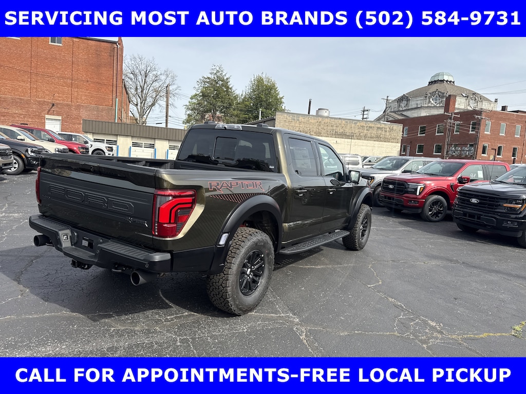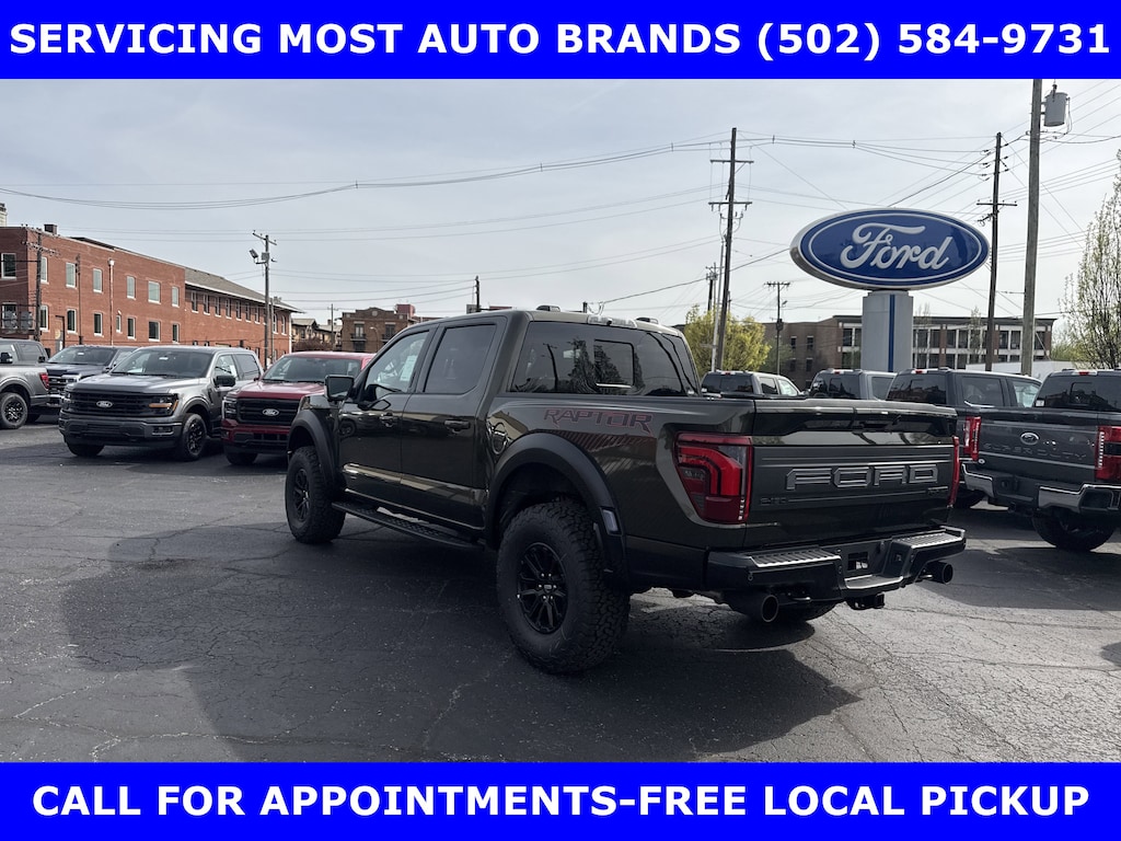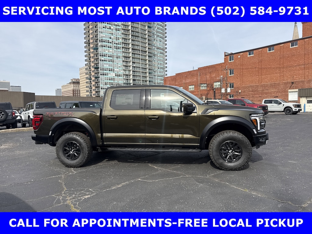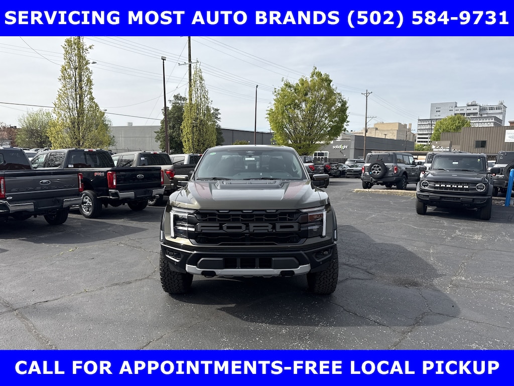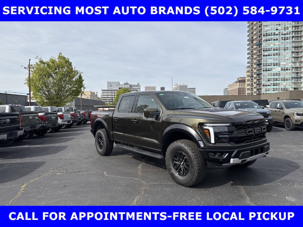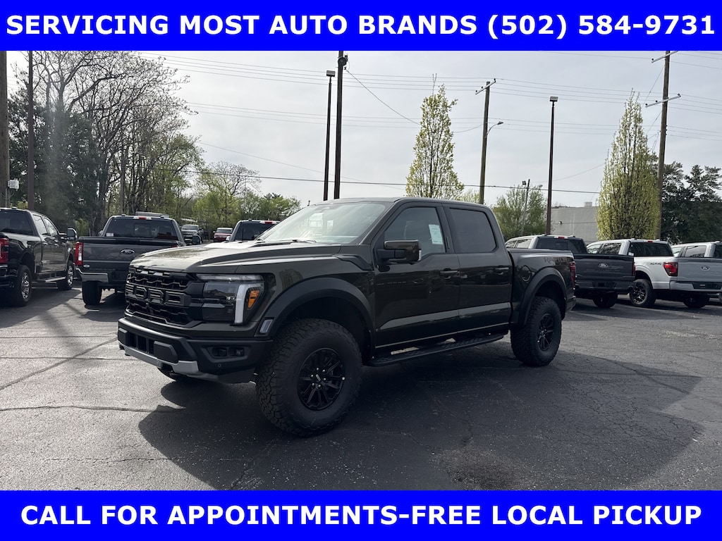 2026 RAPTOR 4x4 SUPERCREW 3.5L HIGH OUTPUT TWIN TURBO w/TEN-SPEED AUTO TRANSMISSION w/TWIN PANEL MOONROOF-BLACK LEATHER TRIMMED SEATS w/HEATED POWER FRONT SEATS-SHELTER GREEN EXTERIOR-17" CAST ALUMINUM WHEELS LT315/70R17 BSW ALL-TERRAIN-4.10 ELECTRONIC LOCKING RR AXLE-7350# GVWR PACKAGE- PRO POWER ONBOARD-2 KW-SECURICODE KEYLESS-KEYPAD-CONNECTION PKG: 1 YR INCL w/FORD APP-LED TAIL LAMP-AMBIENT LIGHTING-BEDLINER-TOUGHBED SPRAYIN-360-DEGREE CAMERA-5G MODEM-B&O UNLEASHED w/14 SPEAKER-BED UTILITY PKG-FOX LIVE VALVE SHOCKS-MOBILE OFFICE PKG-PRO TRAILER BACKUP ASSIST-PRO TRAILER HITCH ASSIST-REAR PARKING SENSORS-REAR VIEW CAMERA-SKID PLATES-SYNC®4 w/EVR & 12" SCREEN-TERRAIN MANAGEMENT SYSTEM-TRAIL CONTROL.WE MAKE PURCHASING EASIER: Work directly with the Owner: Get your pricing, trade value, and financing directly from Daniel Mekuria (Owner/GM). Direct Line (502) 272-8605.Top-Tier Support: Drive with confidence backed by Metro Louisville's Highest Google-Rated Ford Service Center.THE ADVERTISED PRICE DOES NOT REFLECT THE FINAL SELLING PRICE. THE ADVERTISED PRICE OF NEW AND USED VEHICLES DOES NOT INCLUDE SALES TAX, FINANCE CHARGES AND LICENSE FEES REQUIRED BY LAW. WE ATTEMPT TO UPDATE THIS INVENTORY ON A REGULAR BASIS. HOWEVER, THERE CAN BE A DELAY BETWEEN THE SALE OF A VEHICLE AND THE UPDATE OF THE INVENTORY. PRICING AND AVAILABILITY MAY VARY BASED ON A VARIETY OF FACTORS, INCLUDING OPTIONS AND FINANCING QUALIFICATIONS. THE ESTIMATED SELLING PRICE THAT APPEARS AFTER CALCULATING DEALER OFFERS IS FOR INFORMATIONAL PURPOSES, ONLY. YOU MAY NOT QUALIFY FOR THE OFFERS, INCENTIVES, DISCOUNTS, OR FINANCING. OFFERS, INCENTIVES, DISCOUNTS, OR FINANCING ARE SUBJECT TO EXPIRATION AND OTHER RESTRICTIONS. VEHICLES LABELED COMING VERY SOON ARE CURRENTLY NOT FOR SALE, AWAITING TITLE. FOR INFORMATIONAL PURPOSES ONLY. SEE DEALER FOR QUALIFICATIONS AND COMPLETE DETAILS. NATIONWIDE DELIVERY AVAILABLE. FINAL PRICE INCLUDES $500 FINANCING WITH A JAMES COLLINS FORD APPROVED LENDER AND $500 CUSTOMER TRADE ASSISTANCE BONUS. ABOVE MARKET VALUES ON CLEAN 2011 MODELS AND NEWER. PRICE DOES NOT INCLUDE $389.50 PRE/POST DELIVERY PREPARATION ADMIN FEE, DEALER INSTALLED ACCESSORIES IF ANY, STATE AND LOCAL TAXES OR STATE TITLE FEES. LARGE SELECTION OF HIGHEST QUALITY PRE-OWNED, GOLD & FORD CERTIFIED FORD VEHICLES FOR LESS, NEW INVENTORY ARRIVING DAILY, IF YOU DON'T SEE WHAT YOU WANT, WE CAN FIND IT FOR YOU AT NO ADDITIONAL CHARGE. FREE DELIVERY IN LOUISVILLE METRO AREA. FOR MORE INFORMATION PLEASE CALL (502) 584-9731. WE OFFER 14 APPROVED LENDERS TO CHOOSE FROM LOCAL AND REGIONAL CREDIT UNIONS, FORD MOTOR CREDIT, MAJOR AND REGIONAL BANKS, SECONDARY FINANCE SOURCES AND OTHER LENDING INSTITUTIONS. WE CAN ESTABLISH OR RE-ESTABLISH CREDIT AND PAY OFF YOUR CURRENT VEHICLE EVEN AS MUCH AS $10,000 IN NEGATIVE EQUITY.