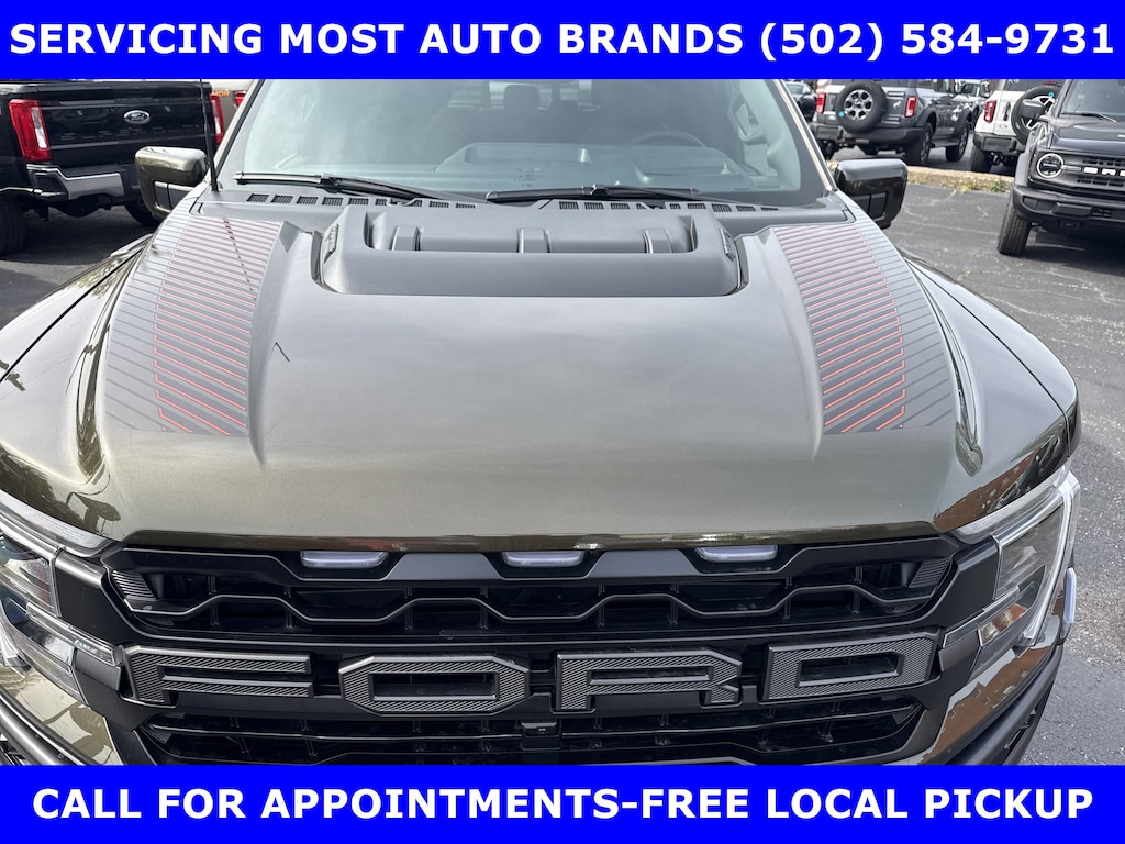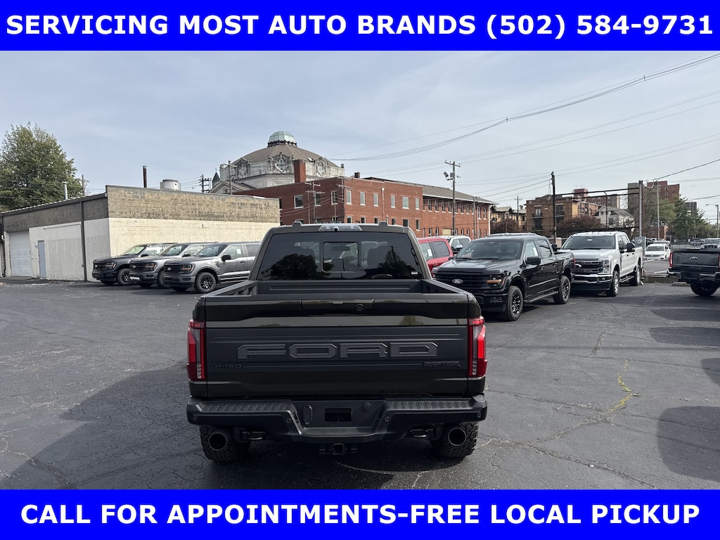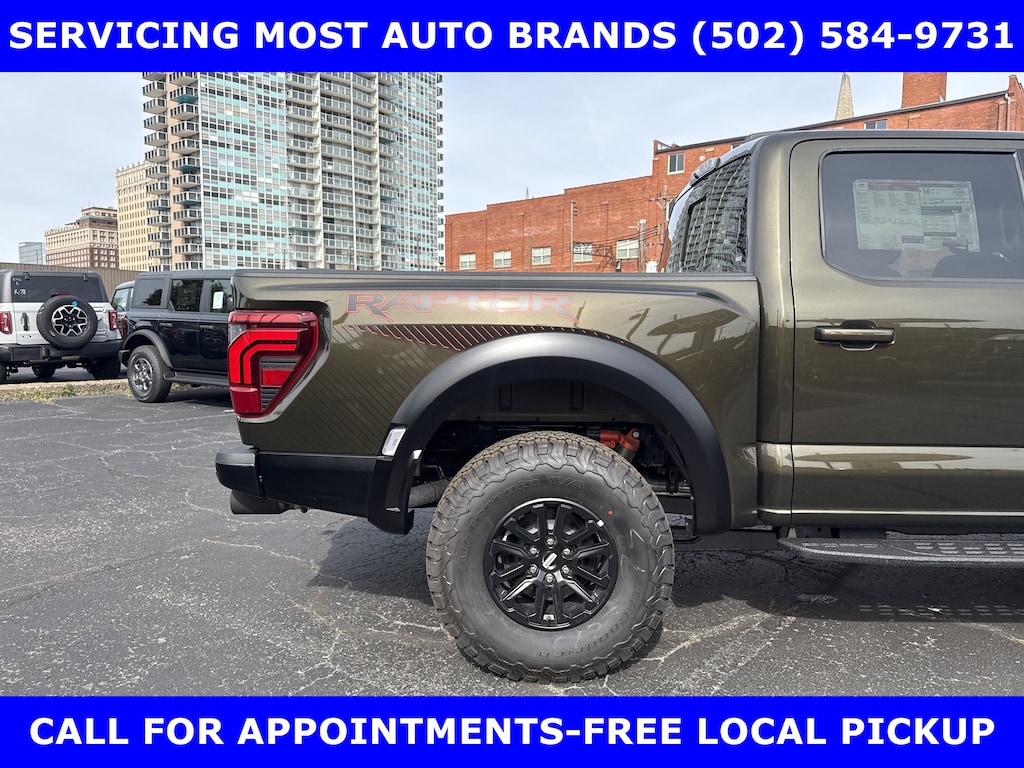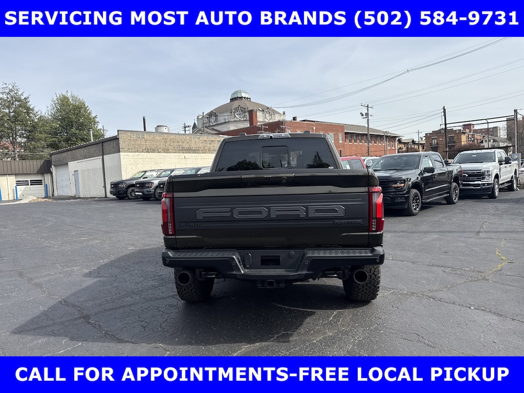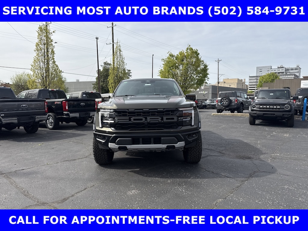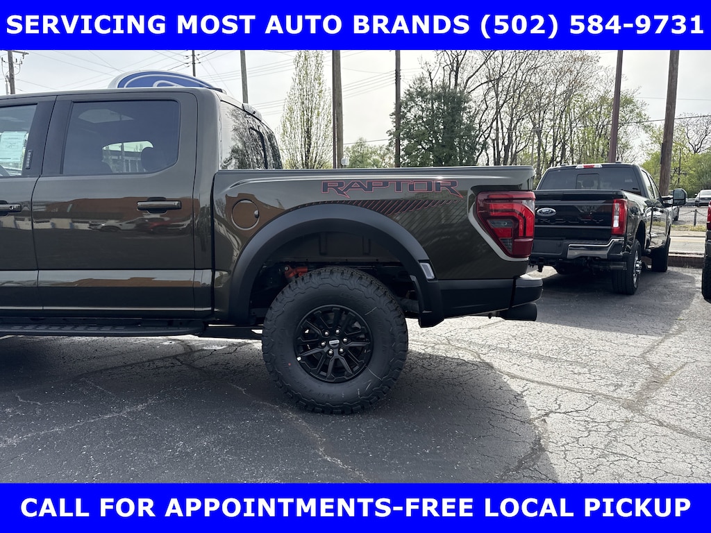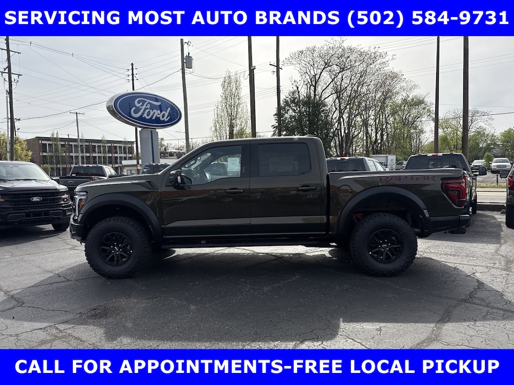 2026 RAPTOR 4x4 SUPERCREW 3.5L HIGH OUTPUT TWIN TURBO w/TEN-SPEED AUTO TRANSMISSION w/TWIN PANEL MOONROOF-BLACK LEATHER TRIMMED SEATS w/HEATED POWER FRONT SEATS-SHELTER GREEN EXTERIOR-17" CAST ALUMINUM WHEELS LT315/70R17 BSW ALL-TERRAIN-4.10 ELECTRONIC LOCKING RR AXLE-7350# GVWR PACKAGE- PRO POWER ONBOARD-2 KW-SECURICODE KEYLESS-KEYPAD-CONNECTION PKG: 1 YR INCL w/FORD APP-LED TAIL LAMP-AMBIENT LIGHTING-BEDLINER-TOUGHBED SPRAYIN-360-DEGREE CAMERA-5G MODEM-B&O UNLEASHED w/14 SPEAKER-BED UTILITY PKG-FOX LIVE VALVE SHOCKS-MOBILE OFFICE PKG-PRO TRAILER BACKUP ASSIST-PRO TRAILER HITCH ASSIST-REAR PARKING SENSORS-REAR VIEW CAMERA-SKID PLATES-SYNC®4 w/EVR & 12" SCREEN-TERRAIN MANAGEMENT SYSTEM-TRAIL CONTROL.WE MAKE PURCHASING EASIER: Work directly with the Owner: Get your pricing, trade value, and financing directly from Daniel Mekuria (Owner/GM). Direct Line (502) 272-8605.Top-Tier Support: Drive with confidence backed by Metro Louisville's Highest Google-Rated Ford Service Center.THE ADVERTISED PRICE DOES NOT REFLECT THE FINAL SELLING PRICE. THE ADVERTISED PRICE OF NEW AND USED VEHICLES DOES NOT INCLUDE SALES TAX, FINANCE CHARGES AND LICENSE FEES REQUIRED BY LAW. WE ATTEMPT TO UPDATE THIS INVENTORY ON A REGULAR BASIS. HOWEVER, THERE CAN BE A DELAY BETWEEN THE SALE OF A VEHICLE AND THE UPDATE OF THE INVENTORY. PRICING AND AVAILABILITY MAY VARY BASED ON A VARIETY OF FACTORS, INCLUDING OPTIONS AND FINANCING QUALIFICATIONS. THE ESTIMATED SELLING PRICE THAT APPEARS AFTER CALCULATING DEALER OFFERS IS FOR INFORMATIONAL PURPOSES, ONLY. YOU MAY NOT QUALIFY FOR THE OFFERS, INCENTIVES, DISCOUNTS, OR FINANCING. OFFERS, INCENTIVES, DISCOUNTS, OR FINANCING ARE SUBJECT TO EXPIRATION AND OTHER RESTRICTIONS. VEHICLES LABELED COMING VERY SOON ARE CURRENTLY NOT FOR SALE, AWAITING TITLE. FOR INFORMATIONAL PURPOSES ONLY. SEE DEALER FOR QUALIFICATIONS AND COMPLETE DETAILS. NATIONWIDE DELIVERY AVAILABLE. FINAL PRICE INCLUDES $500 FINANCING WITH A JAMES COLLINS FORD APPROVED LENDER AND $500 CUSTOMER TRADE ASSISTANCE BONUS. ABOVE MARKET VALUES ON CLEAN 2011 MODELS AND NEWER. PRICE DOES NOT INCLUDE $389.50 PRE/POST DELIVERY PREPARATION ADMIN FEE, DEALER INSTALLED ACCESSORIES IF ANY, STATE AND LOCAL TAXES OR STATE TITLE FEES. LARGE SELECTION OF HIGHEST QUALITY PRE-OWNED, GOLD & FORD CERTIFIED FORD VEHICLES FOR LESS, NEW INVENTORY ARRIVING DAILY, IF YOU DON'T SEE WHAT YOU WANT, WE CAN FIND IT FOR YOU AT NO ADDITIONAL CHARGE. FREE DELIVERY IN LOUISVILLE METRO AREA. FOR MORE INFORMATION PLEASE CALL (502) 584-9731. WE OFFER 14 APPROVED LENDERS TO CHOOSE FROM LOCAL AND REGIONAL CREDIT UNIONS, FORD MOTOR CREDIT, MAJOR AND REGIONAL BANKS, SECONDARY FINANCE SOURCES AND OTHER LENDING INSTITUTIONS. WE CAN ESTABLISH OR RE-ESTABLISH CREDIT AND PAY OFF YOUR CURRENT VEHICLE EVEN AS MUCH AS $10,000 IN NEGATIVE EQUITY.