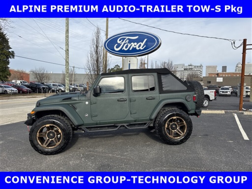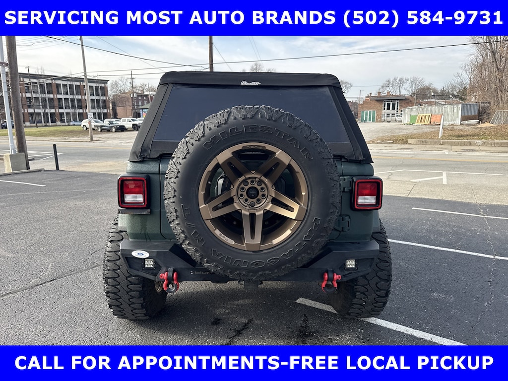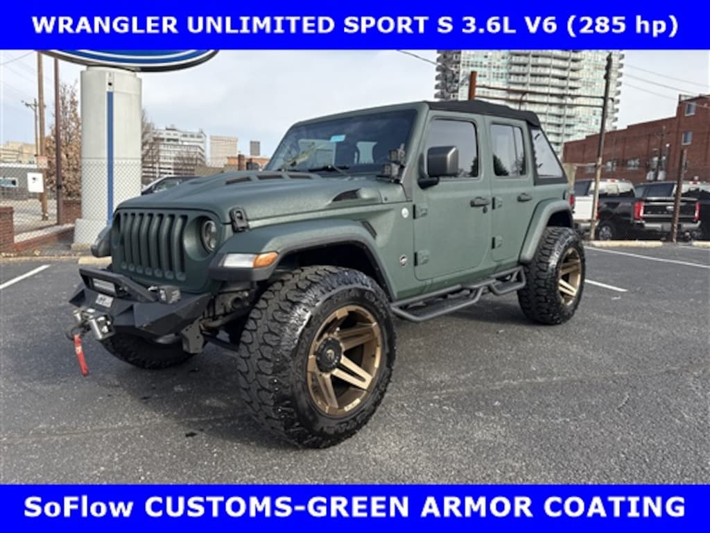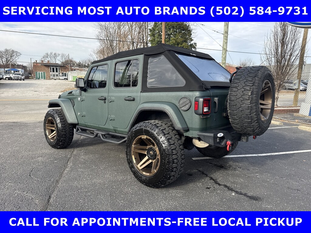 LOCAL FORD TRADE-2018 JEEP WRANGLER UNLIMITED SPORT S 4x4 3.6L V-6 (285 hp) AUTOMATIC w/SoFlow CUSTOMS (PREMIER FLORIDA JEEP CUSTOMIZER) GREEN ARMOR COATING & CUSTOM LEATHER INTERIOR-TECHNOLOGY Pkg-CONVENIENCE Pkg-ALPINE PREMIUM AUDIO SYSTEM-TRAILER TOW Pkg w/HD ELECTRICIAL GROUP. SHOP & BUY FROM HOME. FREE METRO DELIVERY AVAILABLE. (502) 584-9731 FOR INFORMATION ON USED VEHICLES. JAMES COLLINS FORD-LOUISVILLE KY WWW.JAMESCOLLINSFORD.COM, PLUS TAX, LICENSE, FEES. PRICE DOES NOT INCLUDE $389.50 PRE/POST DELIVERY PREPARATION ADMIN FEE, DEALER INSTALLED ACCESSORIES IF ANY, STATE AND LOCAL TAXES OR STATE TITLE FEES.