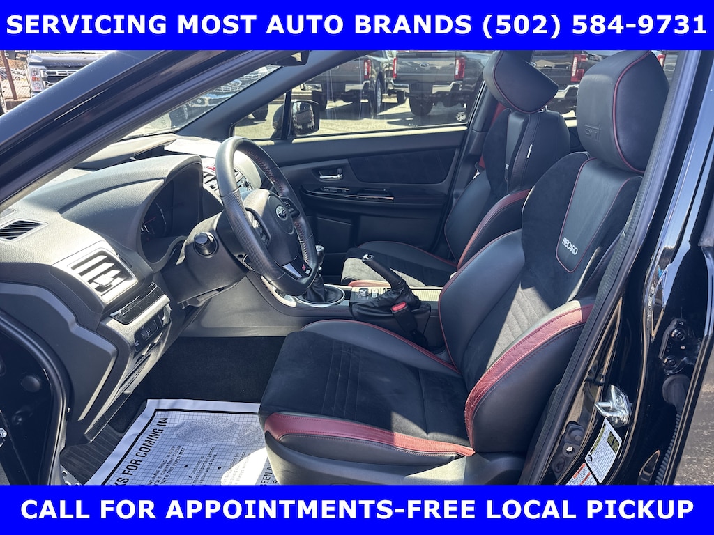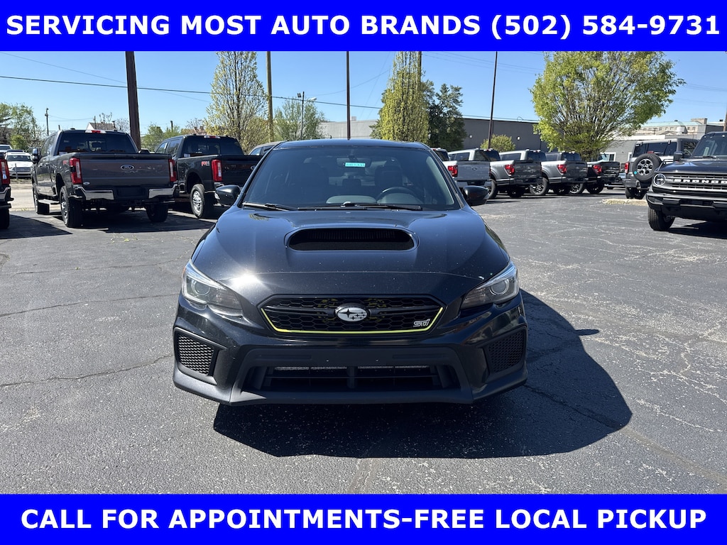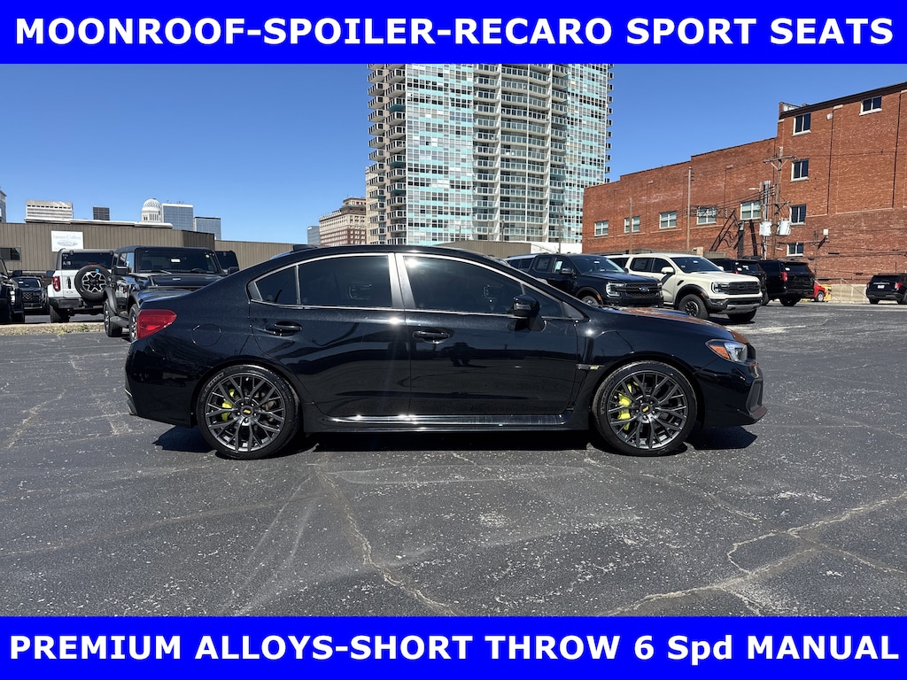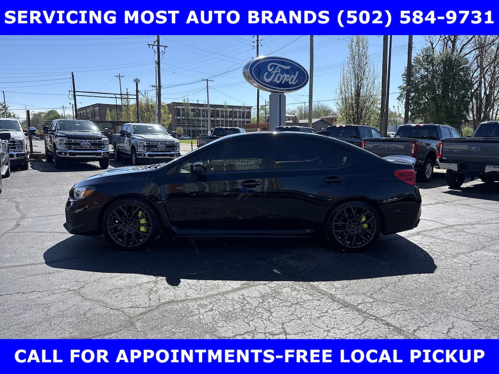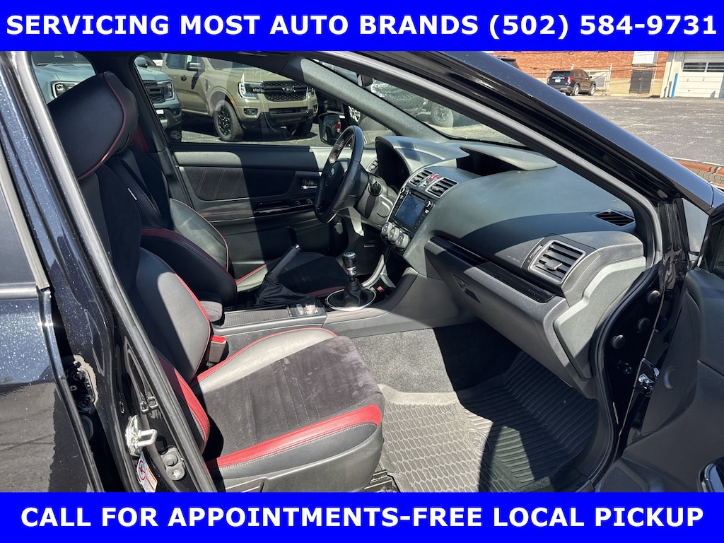 FORD BLUE ADVANTAGE CERTIFIED WARRANTY*TWO OWNER FORD TRADE-2019 SUBARU WRX STI LIMITED AWD (310hp) INTERCOOLED TURBO w/MOONROOF-RECARO PERFORMANCE DESIGN FRONT SEATS-19in PREMIUM ALLOYS-6 Spd SHORT THROW MANUAL TRANSMISSION. AUTOCHECK VEHICLE REPORT 'ZERO' REPORTED ACCIDENTS. (502) 584-9731 FOR INFORMATION ON USED VEHICLES. JAMES COLLINS FORD-LOUISVILLE KY WWW.JAMESCOLLINSFORD.COM, PLUS TAX, LICENSE, FEES. *FORD BLUE ADVANTAGE® BLUE CERTIFIED VEHICLES ARE COVERED BY A FACTORY BACKED LIMITED WARRANTY: -- FOR A FORD, BUICK, CHEVROLET, CHRYSLER, DODGE, GMC, HONDA, JEEP, MAZDA, NISSAN, RAM, SUBARU, OR TOYOTA VEHICLE, 3-MONTH/4,000-MILE COMPREHENSIVE LIMITED WARRANTY BEGINS AT THE EXPIRATION OF THE NEW-VEHICLE LIMITED WARRANTY OR THE SIGNATURE DATE OF THE FORD BLUE ADVANTAGE® -- BLUE CERTIFIED VEHICLE PURCHASE (WHICHEVER COMES LATER) -- FOR OTHER MANUFACTURERS NOT LISTED ABOVE, COMPREHENSIVE COVERAGE IS PROVIDED FOR 3 MONTHS OR 4,000 MILES, WHICHEVER COMES FIRST, FROM THE SIGNATURE DATE OF THE FORD BLUE ADVANTAGE -- BLUE CERTIFIED PURCHASE. -- COMPREHENSIVE LIMITED WARRANTY COVERING 1,000+ COMPONENTS * 14-DAY OR 1,000-MILE MONEY BACK GUARANTEE, WHICHEVER COMES FIRST (SEE MONEY BACK GUARANTEE OPERATIONS GUIDE FOR FULL DETAILS.) * 11,000 FORDPASS® REWARDS POINTS TO USE TOWARD SCHEDULED MAINTENANCE VISITS OR OTHER REWARDS * SIRIUSXM THREE-MONTH COMPLIMENTARY TRIAL * CERTIFIED LIMITED WARRANTY INCLUDES: -- ROADSIDE ASSISTANCE FOR THREE MONTHS -- RENTAL CAR REIMBURSEMENT -- DESTINATION EXPENSE REIMBURSEMENT * VEHICLE ELIGIBILITY REQUIREMENTS ARE: -- CURRENT PLUS NINE PREVIOUS MODEL YEARS -- LESS THAN 150,000 ACTUAL MILES *TO BE CERTIFIED, ALL VEHICLES MUST PASS UP TO A 139-POINT INSPECTION, ENSURING THAT THE VEHICLE IS CLEAN AND MECHANICALLY SOUND (OIL CHANGE, FLUIDS TOPPED OFF, ETC.)