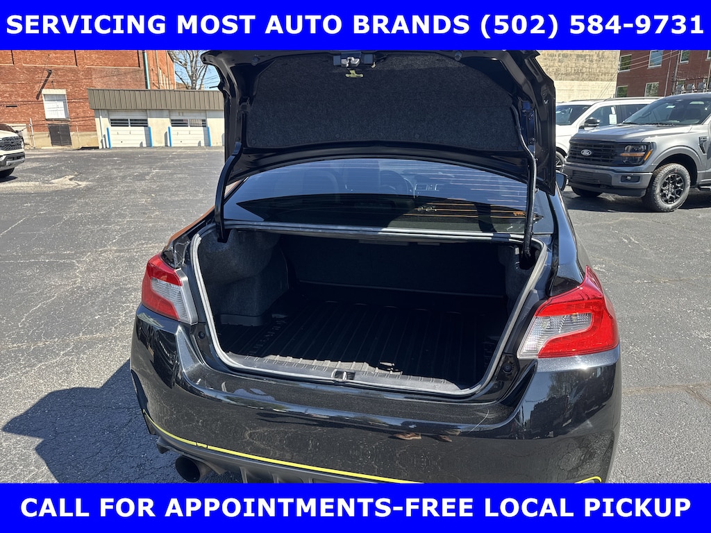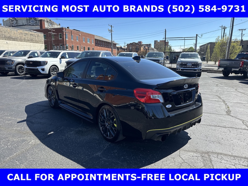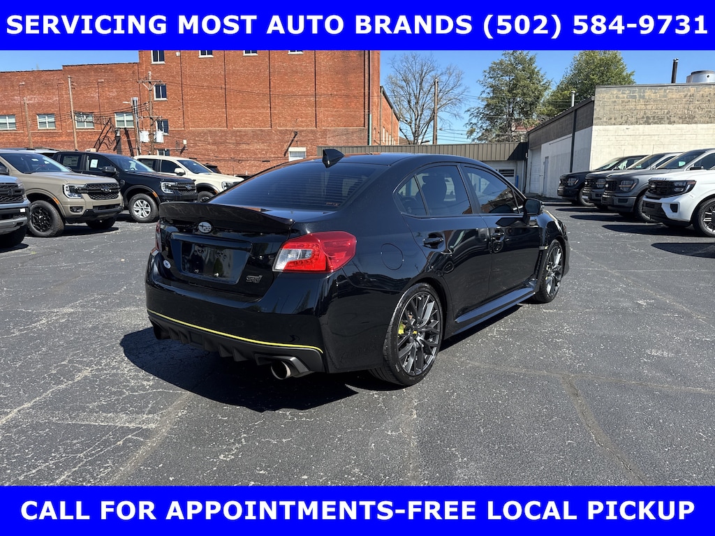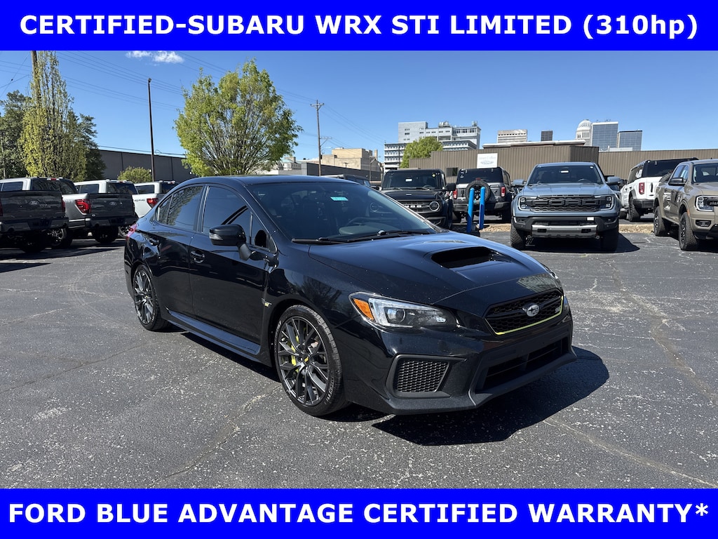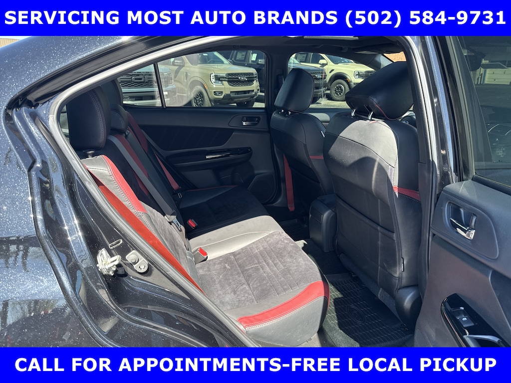 FORD BLUE ADVANTAGE CERTIFIED WARRANTY*TWO OWNER FORD TRADE-2019 SUBARU WRX STI LIMITED AWD (310hp) INTERCOOLED TURBO w/MOONROOF-RECARO PERFORMANCE DESIGN FRONT SEATS-19in PREMIUM ALLOYS-6 Spd SHORT THROW MANUAL TRANSMISSION. AUTOCHECK VEHICLE REPORT 'ZERO' REPORTED ACCIDENTS. (502) 584-9731 FOR INFORMATION ON USED VEHICLES. JAMES COLLINS FORD-LOUISVILLE KY WWW.JAMESCOLLINSFORD.COM, PLUS TAX, LICENSE, FEES. *FORD BLUE ADVANTAGE® BLUE CERTIFIED VEHICLES ARE COVERED BY A FACTORY BACKED LIMITED WARRANTY: -- FOR A FORD, BUICK, CHEVROLET, CHRYSLER, DODGE, GMC, HONDA, JEEP, MAZDA, NISSAN, RAM, SUBARU, OR TOYOTA VEHICLE, 3-MONTH/4,000-MILE COMPREHENSIVE LIMITED WARRANTY BEGINS AT THE EXPIRATION OF THE NEW-VEHICLE LIMITED WARRANTY OR THE SIGNATURE DATE OF THE FORD BLUE ADVANTAGE® -- BLUE CERTIFIED VEHICLE PURCHASE (WHICHEVER COMES LATER) -- FOR OTHER MANUFACTURERS NOT LISTED ABOVE, COMPREHENSIVE COVERAGE IS PROVIDED FOR 3 MONTHS OR 4,000 MILES, WHICHEVER COMES FIRST, FROM THE SIGNATURE DATE OF THE FORD BLUE ADVANTAGE -- BLUE CERTIFIED PURCHASE. -- COMPREHENSIVE LIMITED WARRANTY COVERING 1,000+ COMPONENTS * 14-DAY OR 1,000-MILE MONEY BACK GUARANTEE, WHICHEVER COMES FIRST (SEE MONEY BACK GUARANTEE OPERATIONS GUIDE FOR FULL DETAILS.) * 11,000 FORDPASS® REWARDS POINTS TO USE TOWARD SCHEDULED MAINTENANCE VISITS OR OTHER REWARDS * SIRIUSXM THREE-MONTH COMPLIMENTARY TRIAL * CERTIFIED LIMITED WARRANTY INCLUDES: -- ROADSIDE ASSISTANCE FOR THREE MONTHS -- RENTAL CAR REIMBURSEMENT -- DESTINATION EXPENSE REIMBURSEMENT * VEHICLE ELIGIBILITY REQUIREMENTS ARE: -- CURRENT PLUS NINE PREVIOUS MODEL YEARS -- LESS THAN 150,000 ACTUAL MILES *TO BE CERTIFIED, ALL VEHICLES MUST PASS UP TO A 139-POINT INSPECTION, ENSURING THAT THE VEHICLE IS CLEAN AND MECHANICALLY SOUND (OIL CHANGE, FLUIDS TOPPED OFF, ETC.)